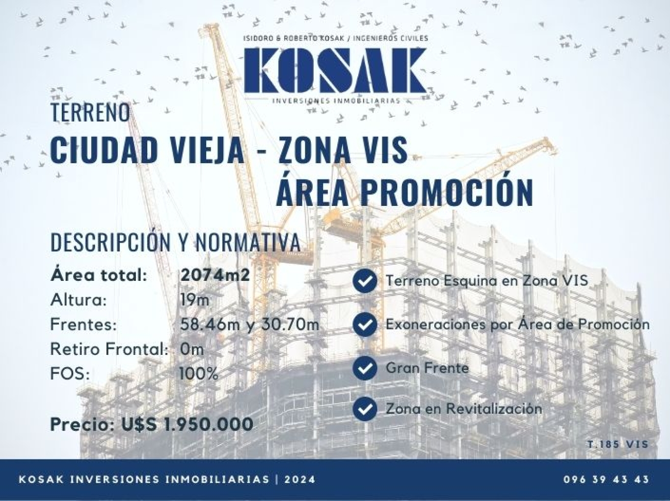 KOSAK INVERSIONES INMOBILIARIAS - TERRENOSGran terreno esquina en Ciudad Vieja.