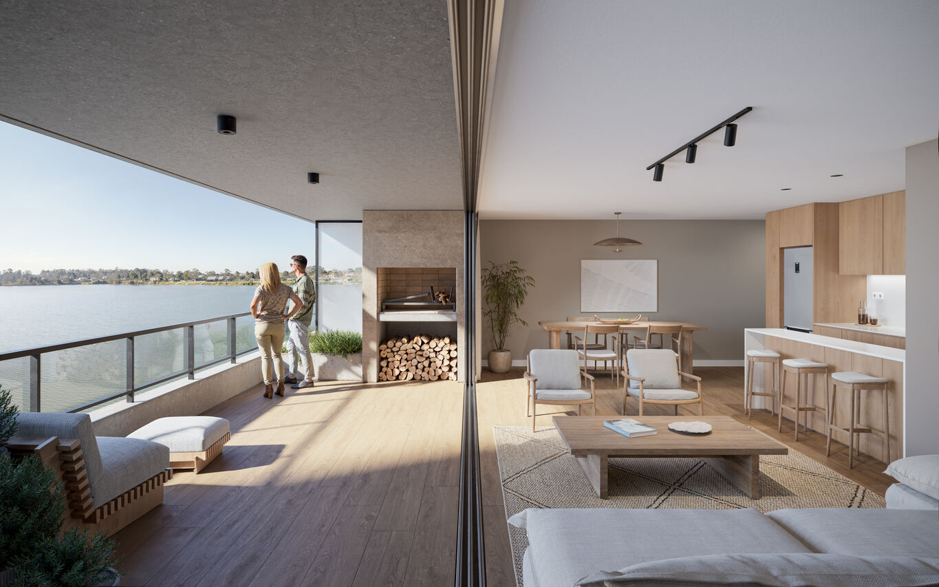 Ubicado a orillas del Lago Calcagno, este desarrollo combina una vista inigualable, espacios verdes y acceso directo a los principales servicios, colegios y centros comerciales de la zona.