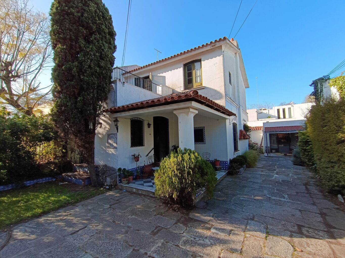 CARRASCO SUR En excelente ubicación a un paso de Av Arocena. Se ubica en la zona de mayor prestigio de Carrasco, ideal para proyectos comerciales o residencia de alto nivel. Se desarrolla en 2 plantas, 199 m2 de muy buena construcción sobre un terreno de 300 m2. Hermoso y amplio porche con una abertura en madera que nos invita a ingresar al living con su piso original en listones de pinotea, estar con estufa a leña, comedor diario, cocina, baño completo, lavadero, patio interior. En planta alta 2 dormitorios con placares, closet, baño completo, terraza. Estudio compuesto por tres ambientes, patio. Cochera para 2 autos. Próxima a colegios, centro comercial y servicios. Para actualizar. Admite préstamo bancario.