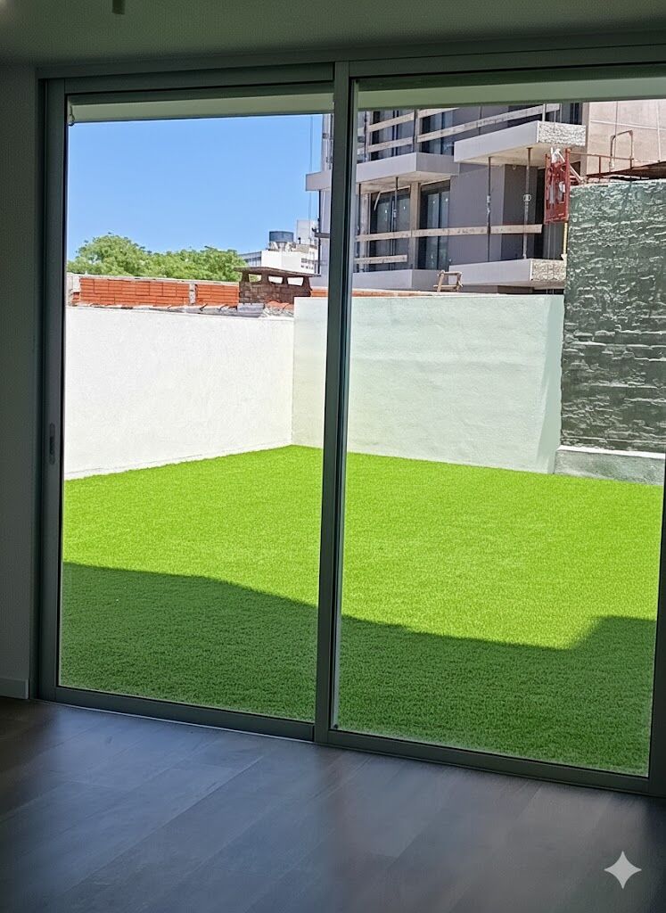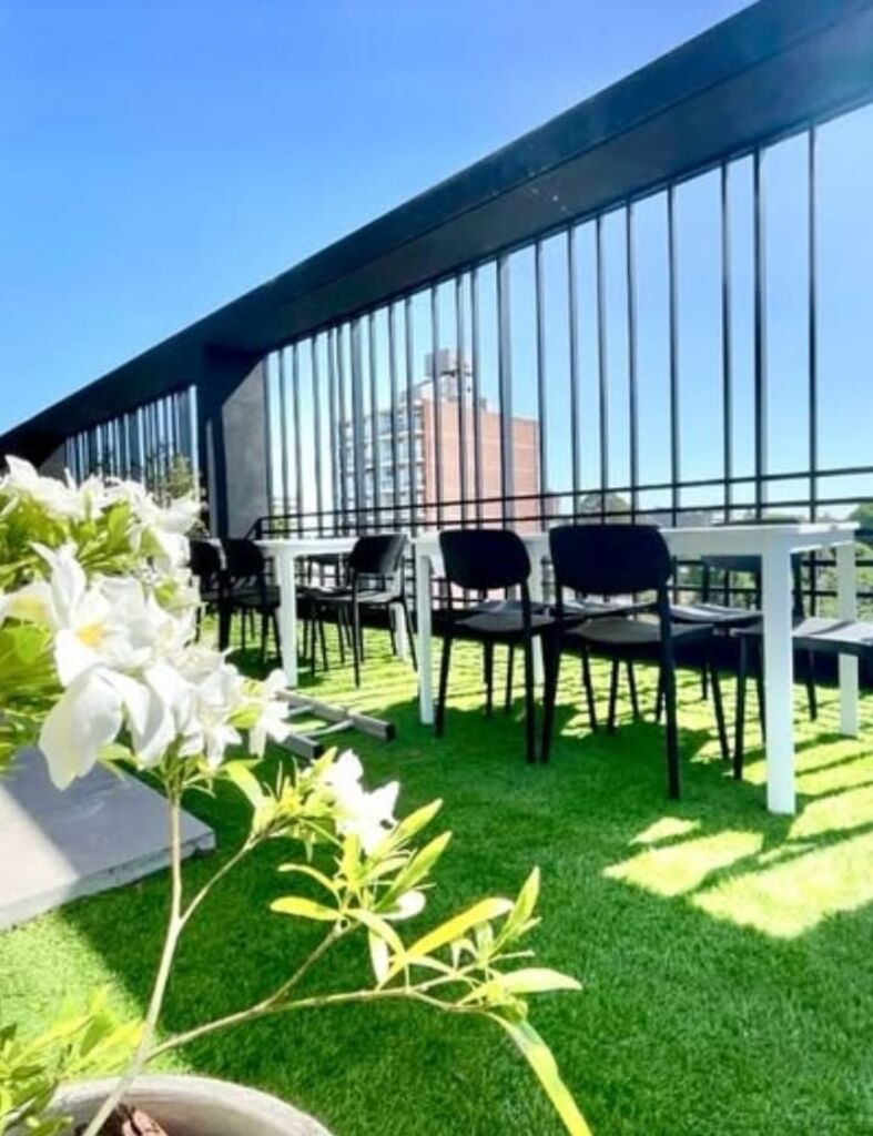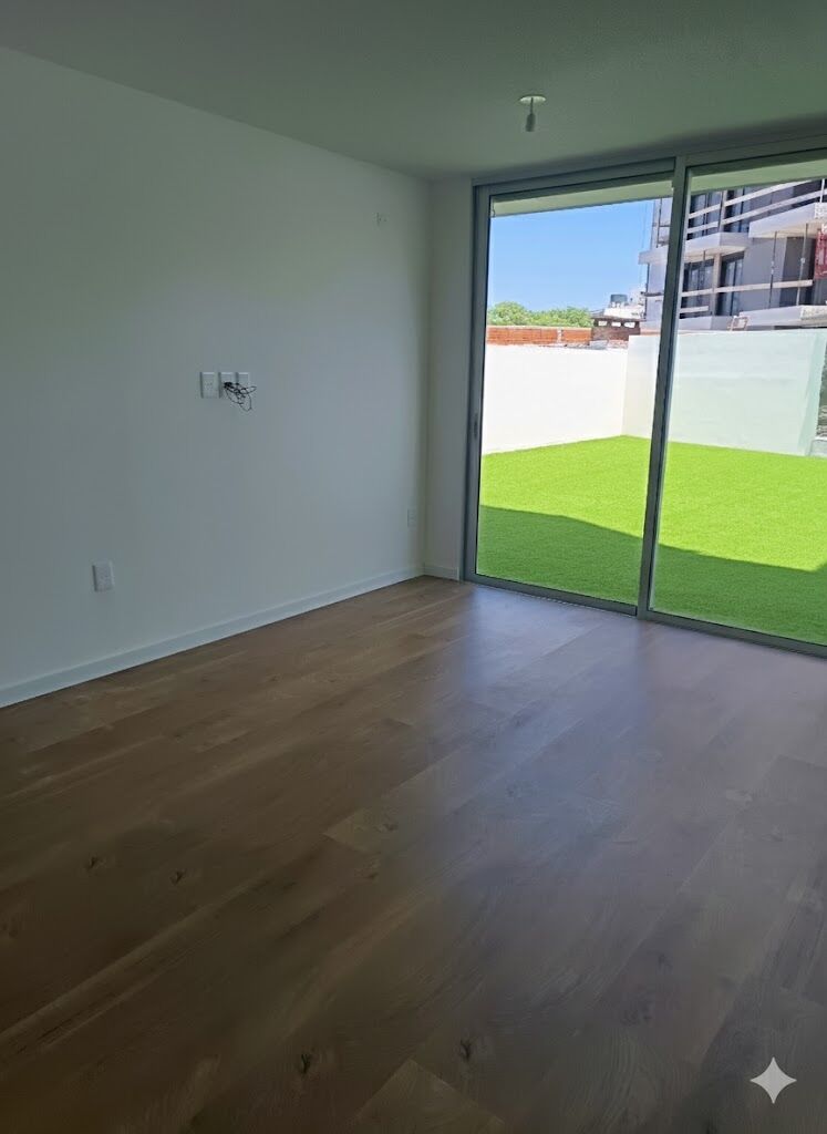 La unidad cuenta con patio de gran tamaño, cocina equipada con placares aéreos y bajo mesada, anafe, horno y campana, y dormitorio con placar. Incluye garaje.
