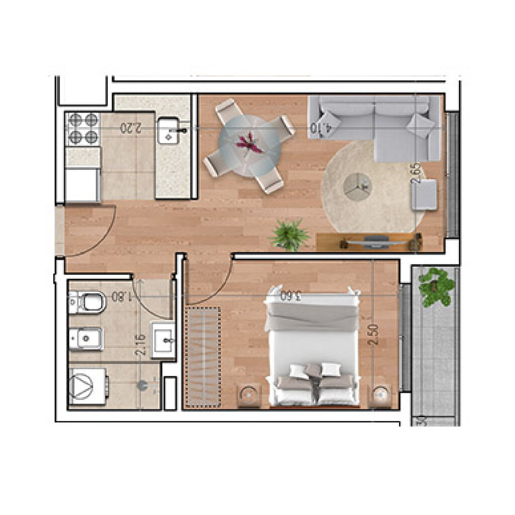 Unidad al contrafrente de un dormitorio con terraza ubicada en el Edificio Ventura 810 con frente a la Avenida 8 de Octubre N° 2988, en el Barrio La Blanqueada.Se ubica en el sexto piso por ascensor, cuenta con una superficie de 38 m2 y excelente vista despejada.