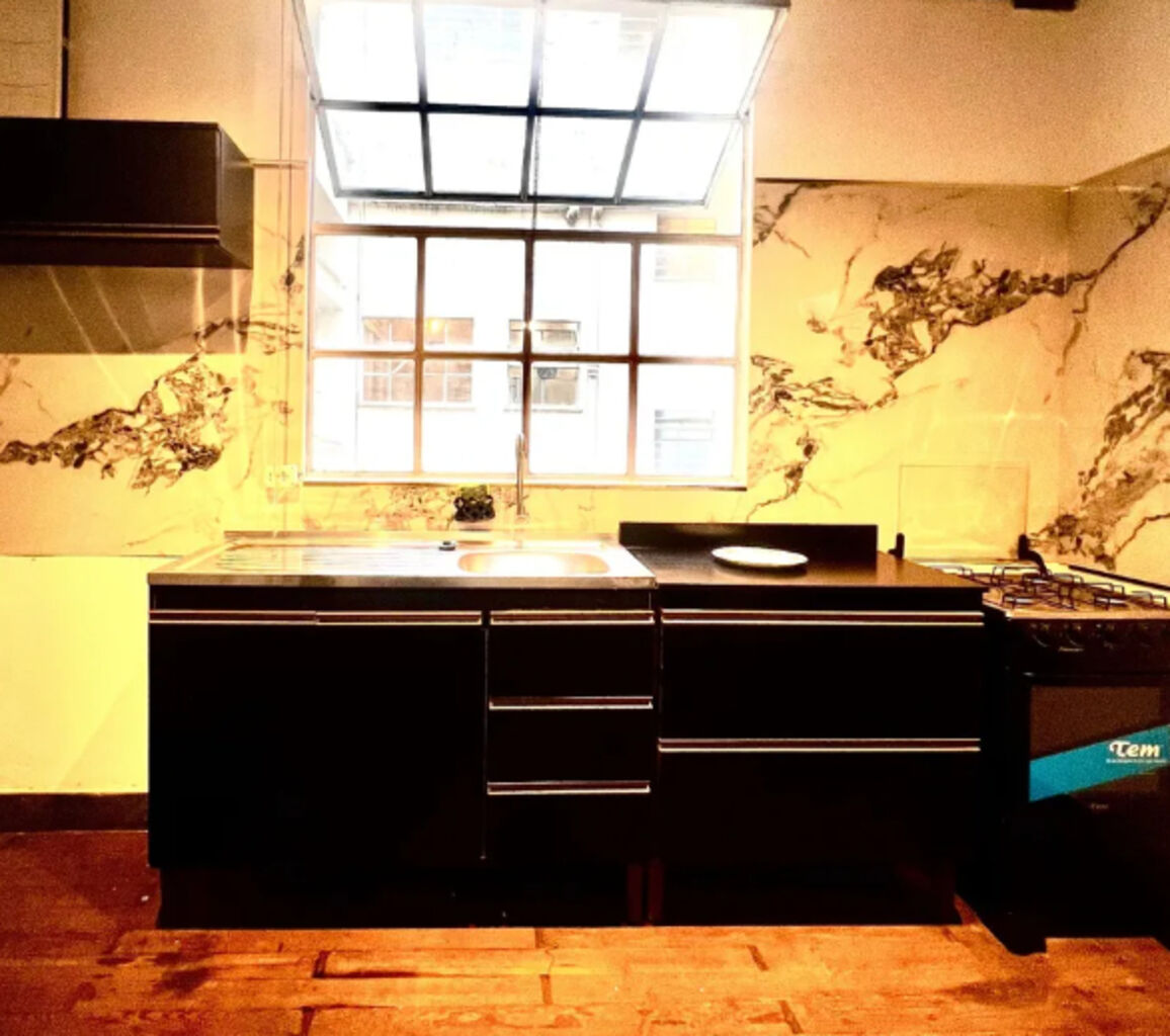 Cocina amplia, con gran ventanal, entrepiso y mobiliario moderno. Electrodomésticos nuevos (TEM).
