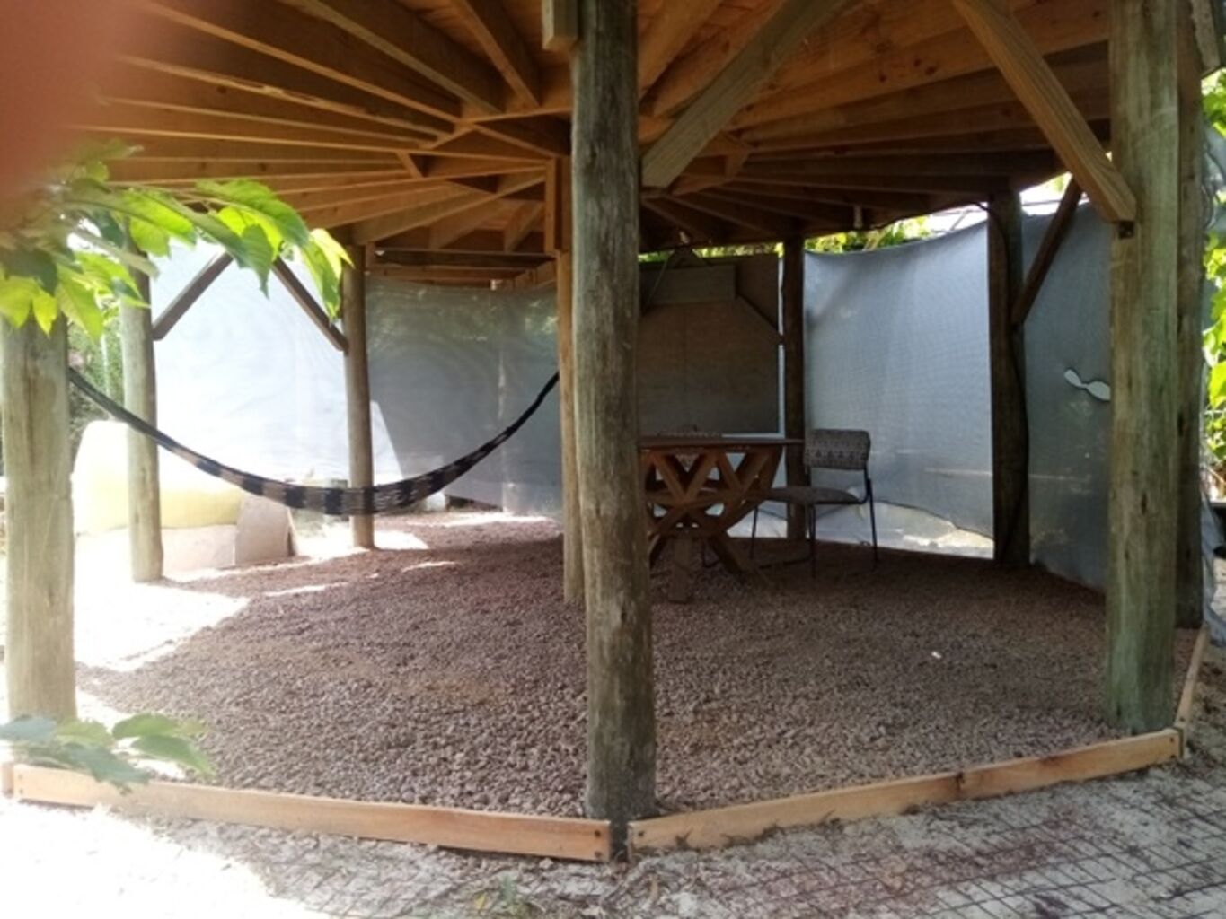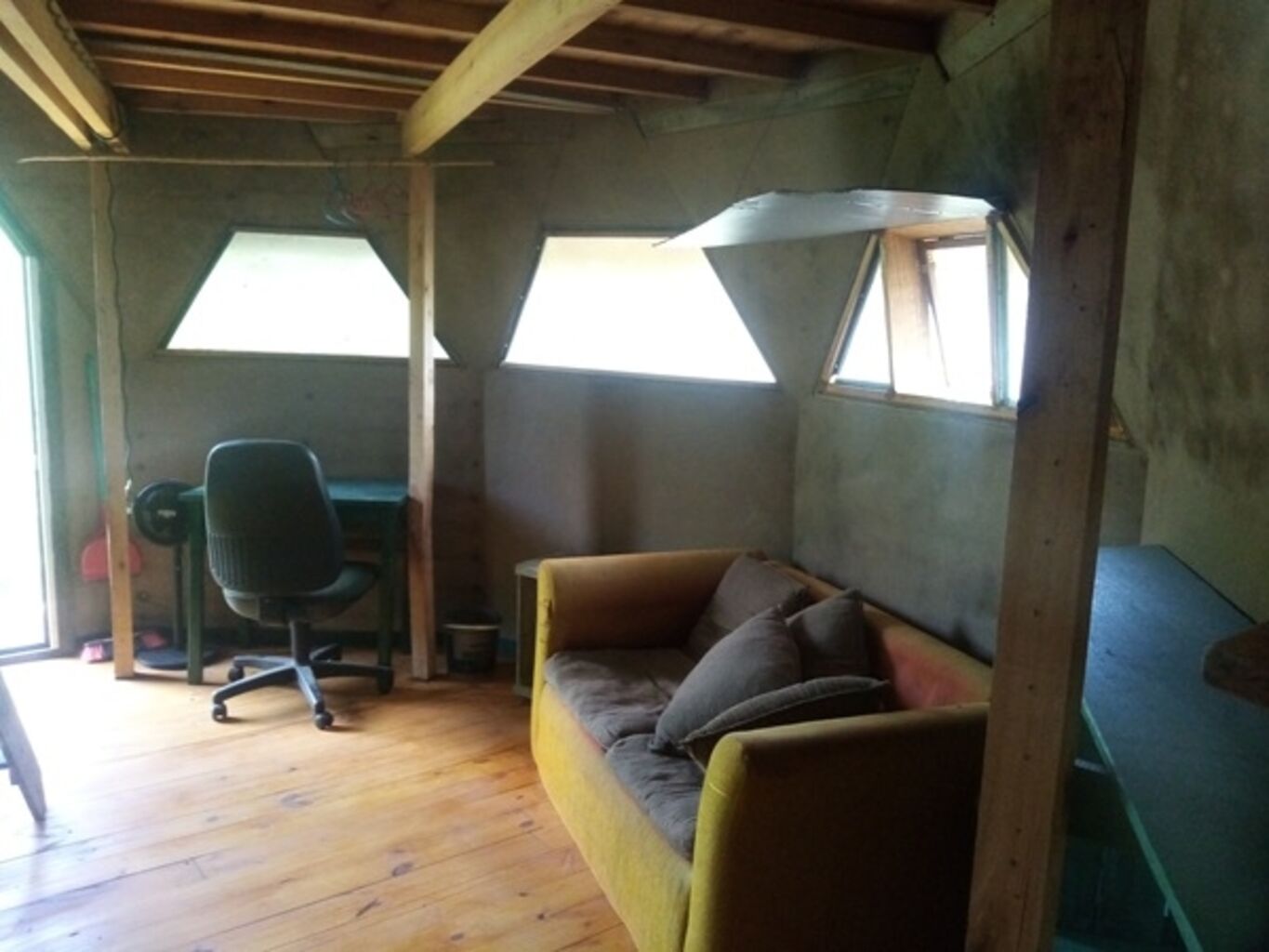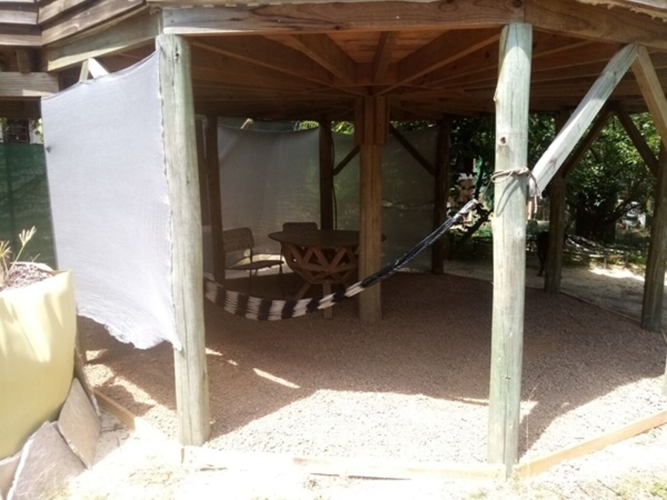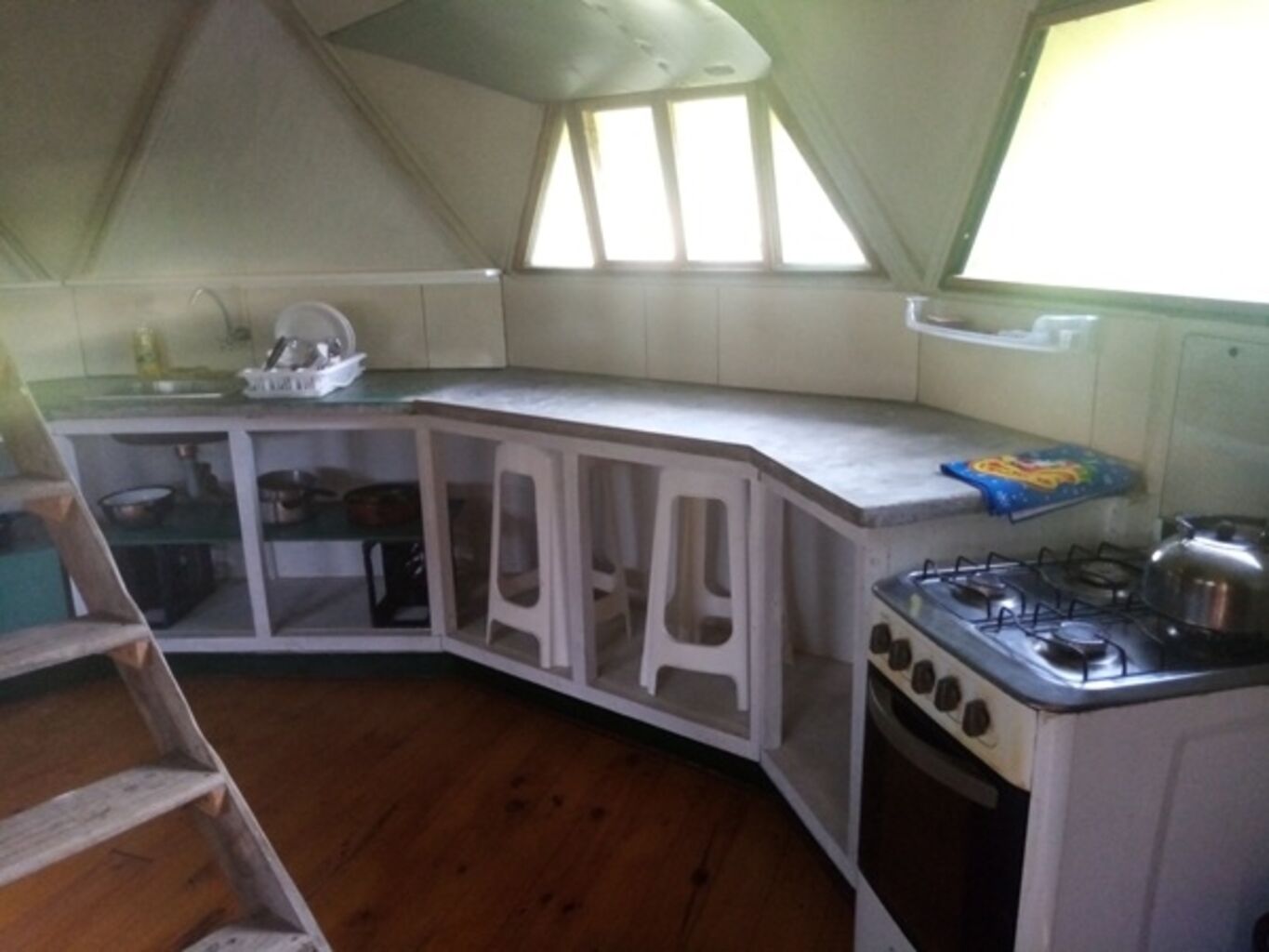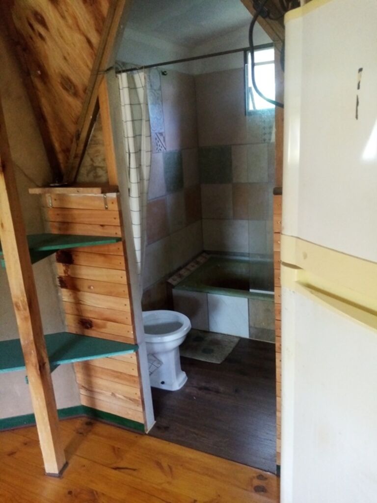 Por ultimo al otro lado, también en el fondo se encuentra el Bungalow de unos 15m2 en altura, el mismo quedo como un monoambiente con baño completo y deposito o dormitorio superior para una persona. En la parte exterior debajo del bungalow, queda un espacio que se puede utilizar como comedor, estar o jardín en verano.