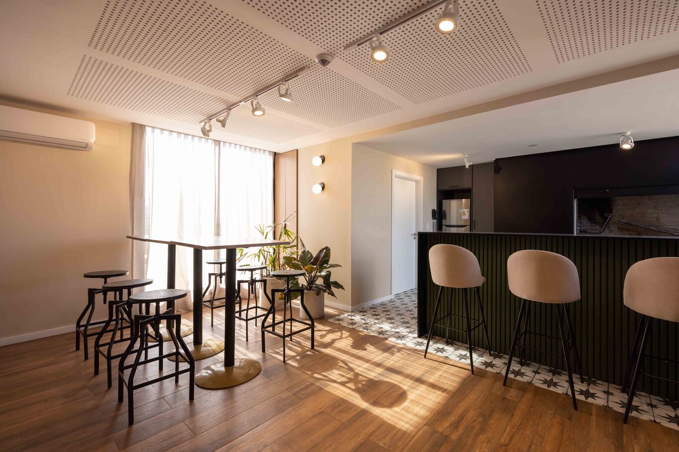 Se destacan entre sus amenities: barbacoa, gimnasio, rincón de juegos para niños, espacio para lectura, trabajo y/o estudio, lavandería, etc.