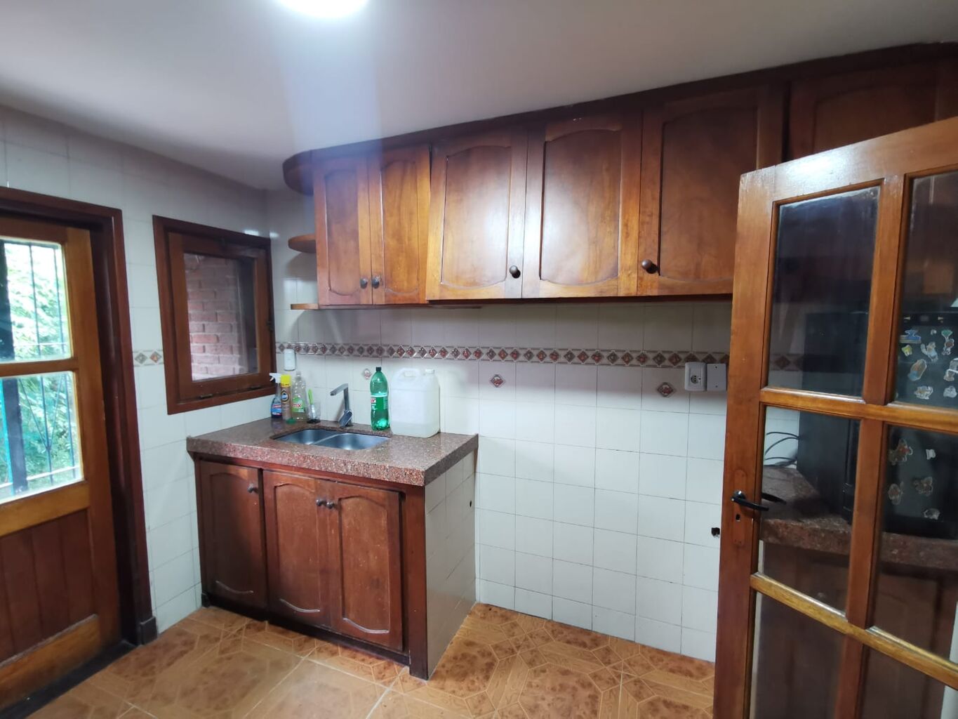 2 dormitorios, 1 baño, living, cocina con comedor diario y estufa a leña.