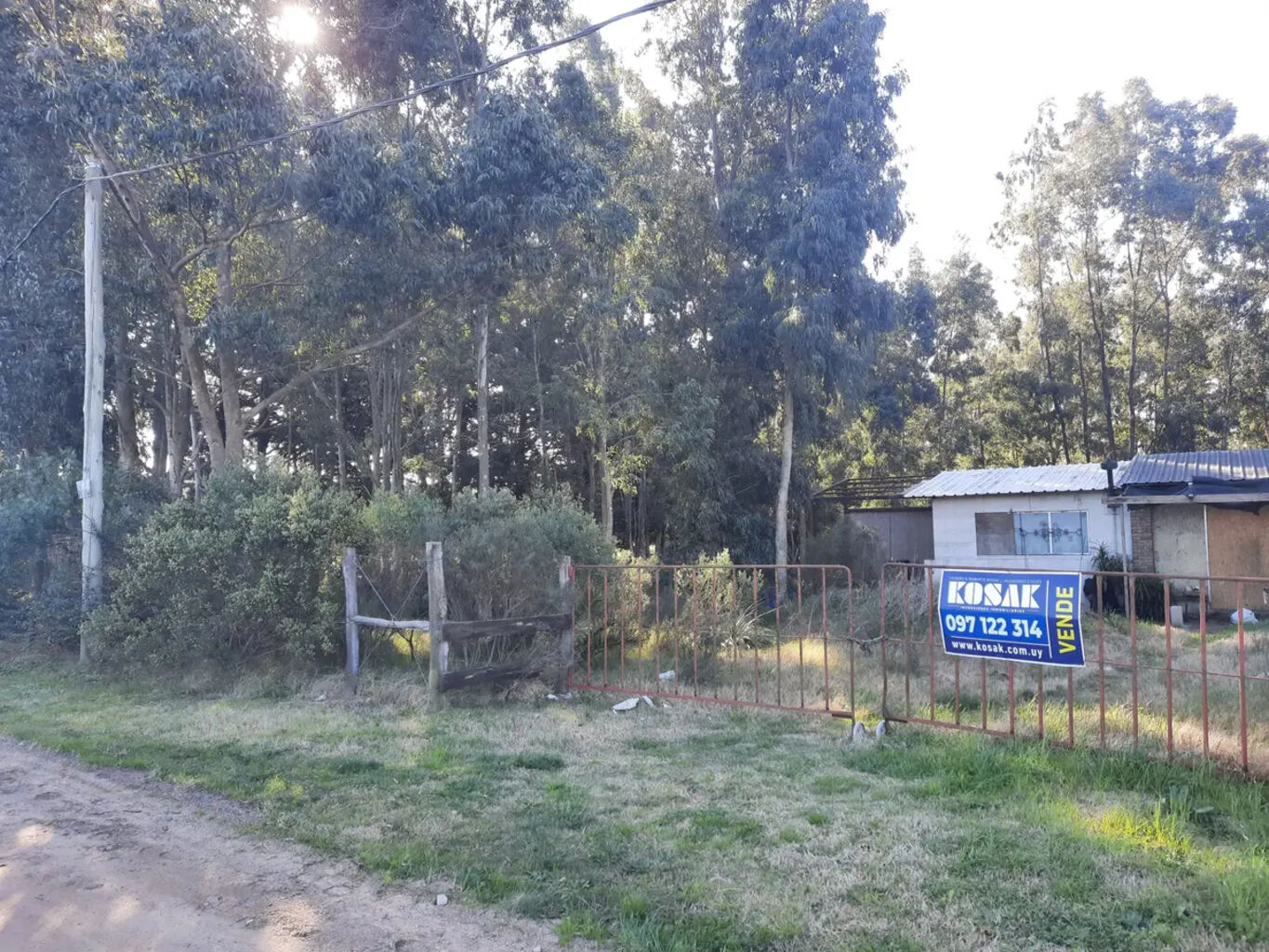 Terreno arbolado, con una construcción precaria.