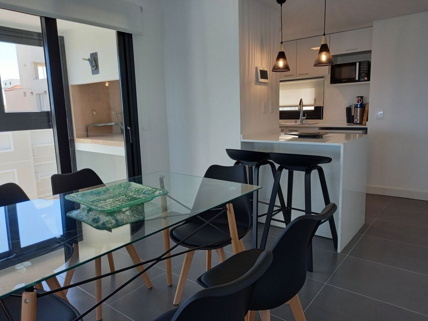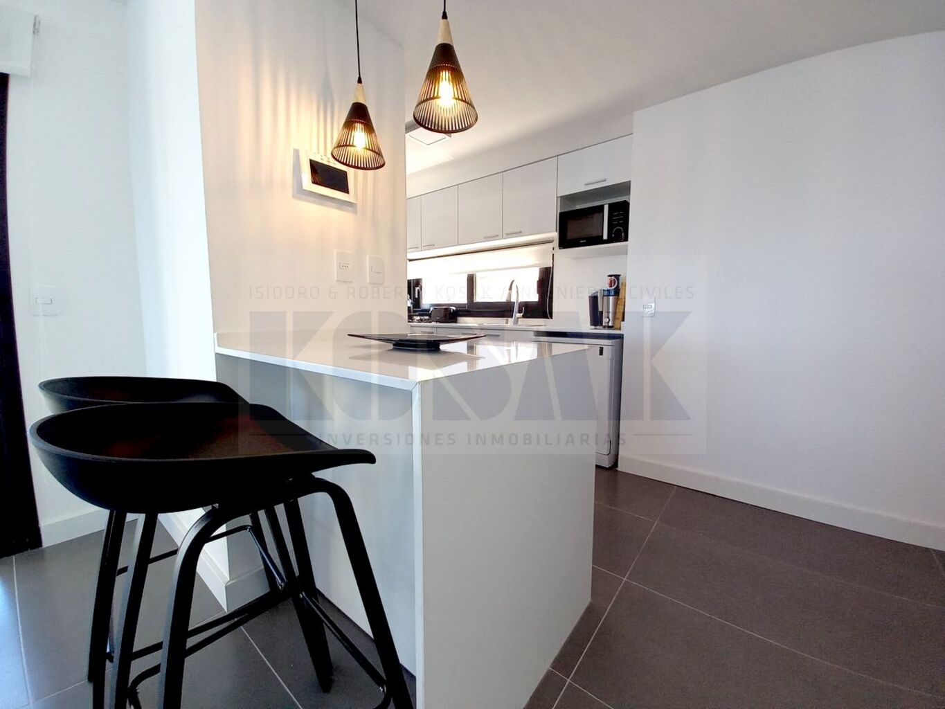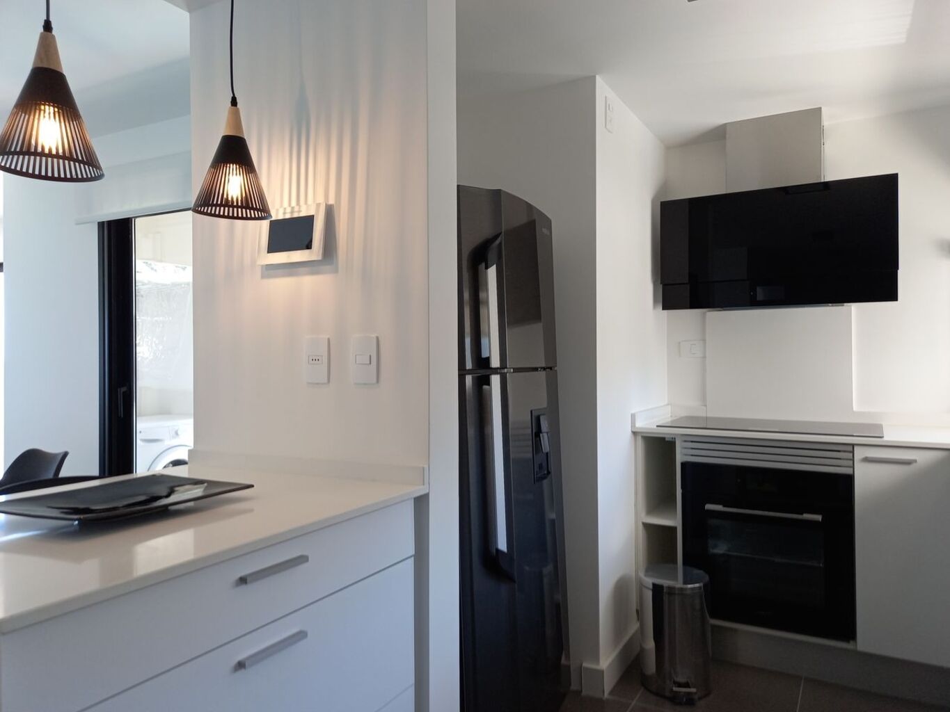 Cocina totalmente equipada, con barra, semi-integrada. Luminosa, amplia