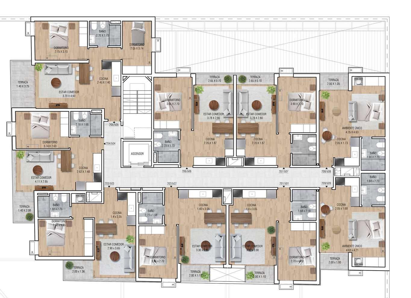 Amenities: Salas de estudio, espacios de trabajo, parrillero, gimnasio y solárium.
