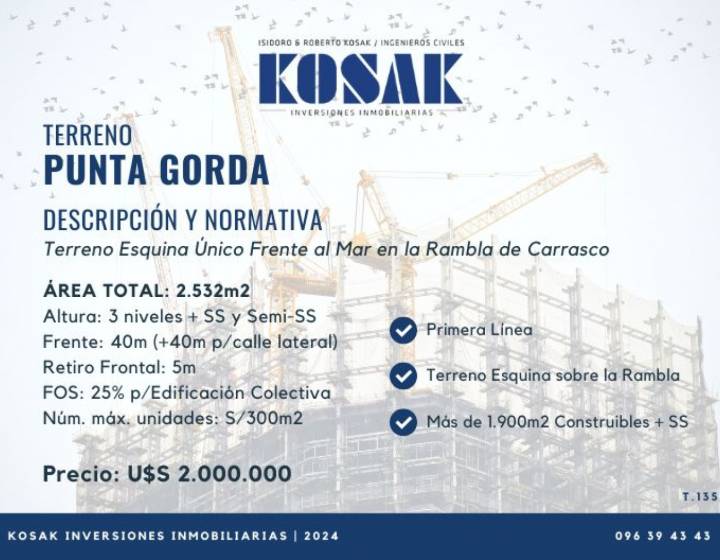 Kosak Punta Del Este Venta Terreno Apto Altura Brava - Av Roosevelt A Pasos Mar