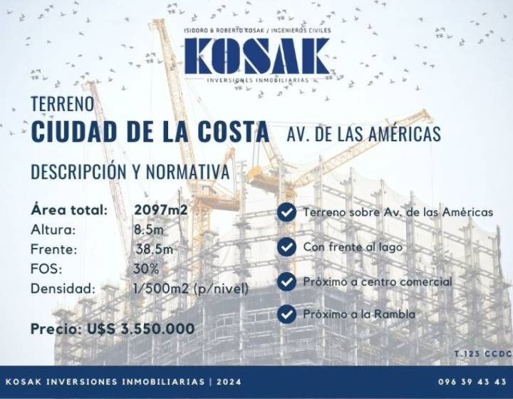 Terreno Ciudad de la Costa sobre Av. de las Américas con frente al Lago