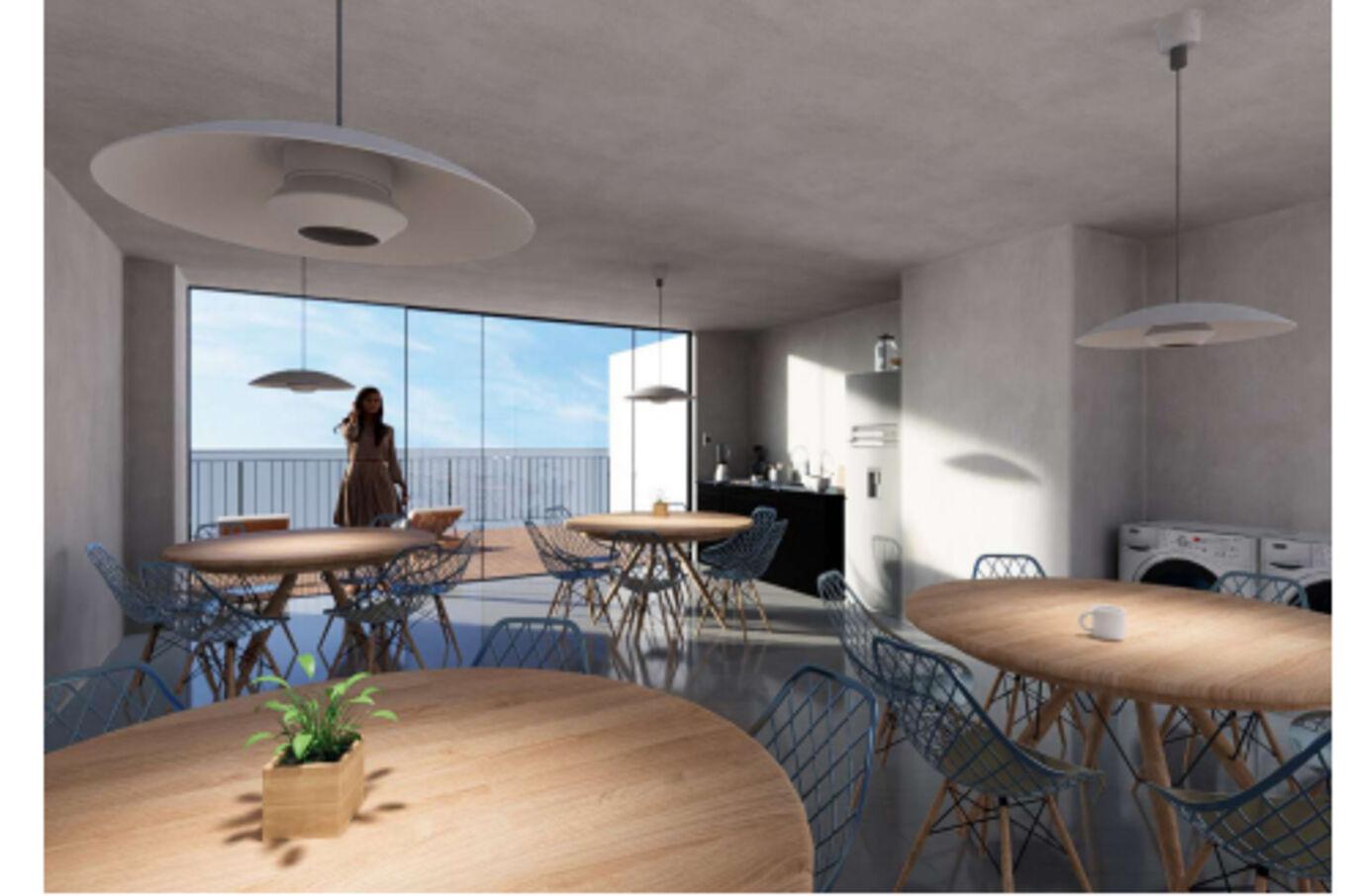 En el último nivel se ubican los amenities: parrillero, gimnasio y playroom, todos con salida al solárium y terrazas al frente y contrafrente. El edificio también contará con laundry