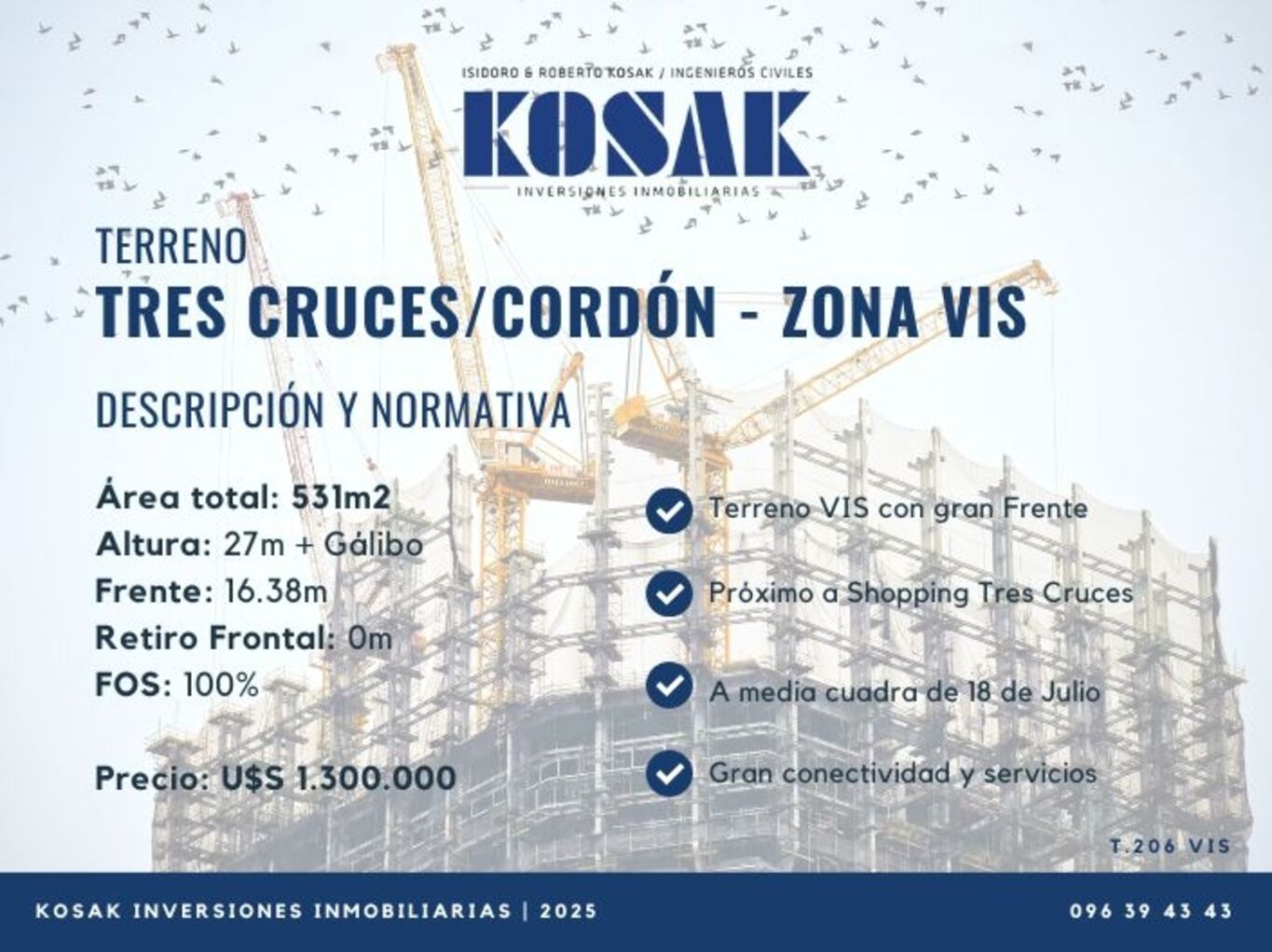 KOSAK INVERSIONES INMOBILIARIAS - TERRENOSTerreno con gran frente a media cuadra de 18 de Julio.