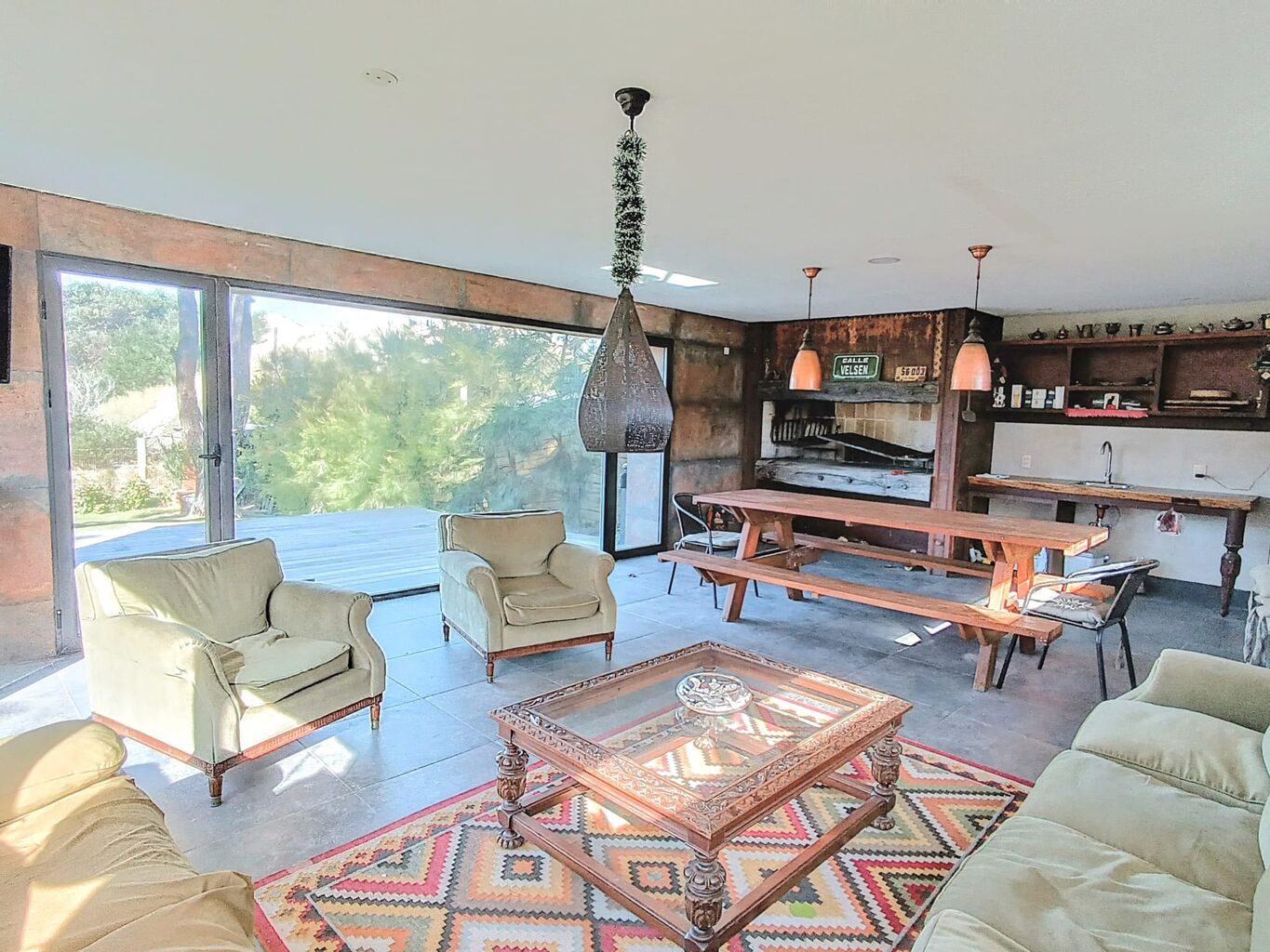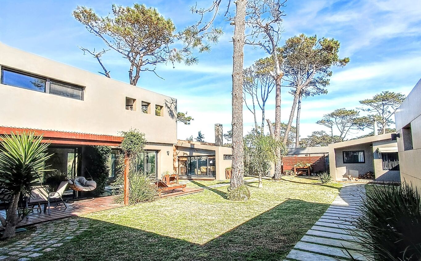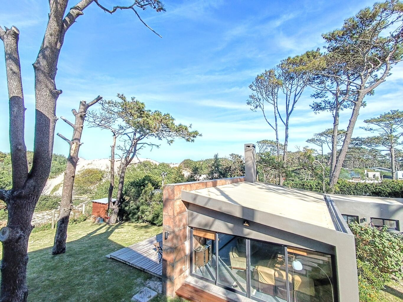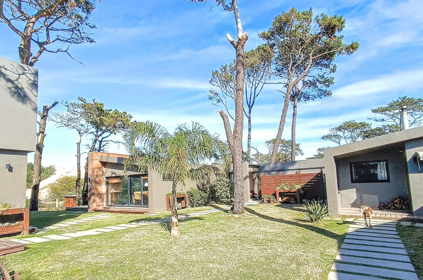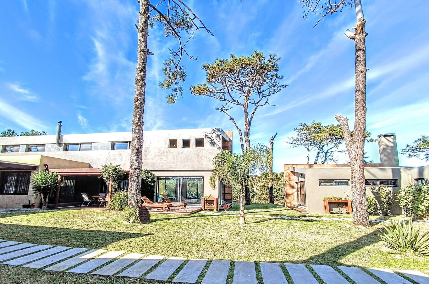Magnífica propiedad de moderno diseño construida sobre la costa, sobre los médanos, en zona de preservación de áreas verdes, con un gran parque privado de 2.000 m2 y 600 m2 edificadosLa casa principal tiene 460 m2 edificados en dos plantas, en impecable estado y con excelente calidad en sus terminaciones. Ambientes amplios y muy luminosos, los grandes ventanales integran las áreas verdes, carpintería de primera. Living comedor, estar y amplia cocina con comedor diario. 4 dormitorios muy amplios con buenos placares, master suite de 54 m2 con vestidor con amplia terraza frente al mar. 3 baños, calefacción losa radiante, A.A. en todos los ambientes y 2 estufas a leña de alto rendimiento. Aberturas DVH y cortinas automatizadas, piscina cerrada y climatizada de 14 mts de largo, hermosa barbacoa con baño, garaje para 4 autos, lavadero y depósito