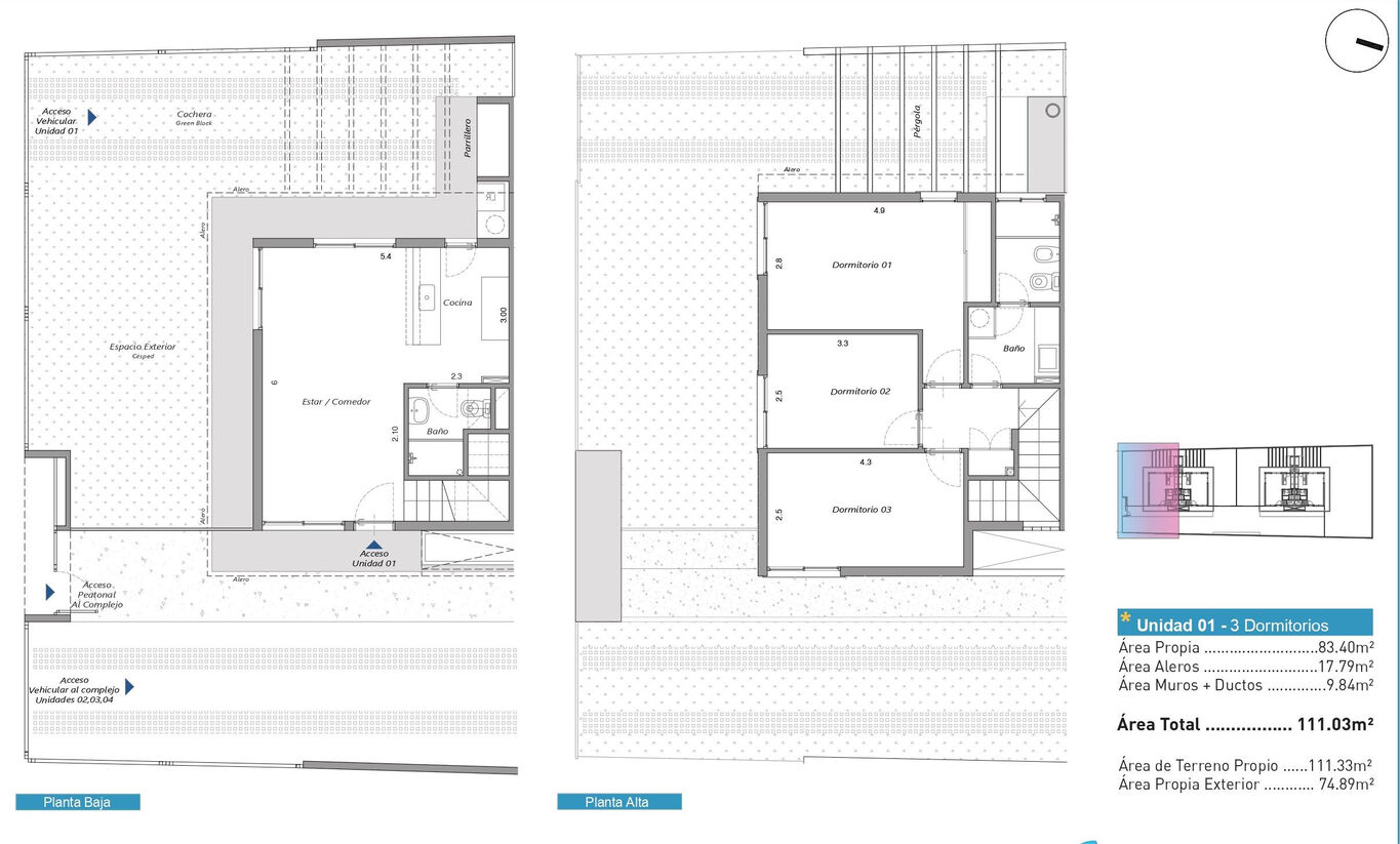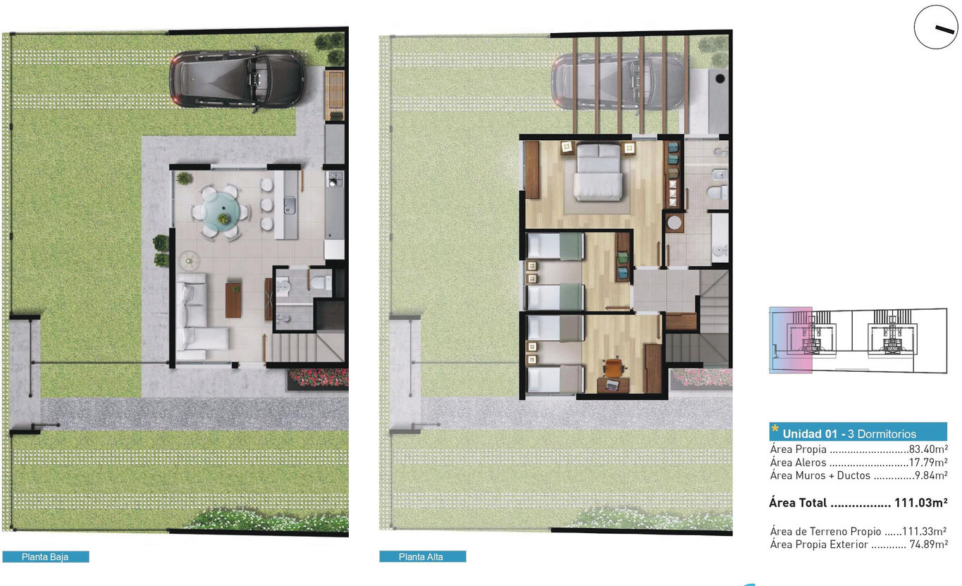 Dúplex de 3 dormitorios.