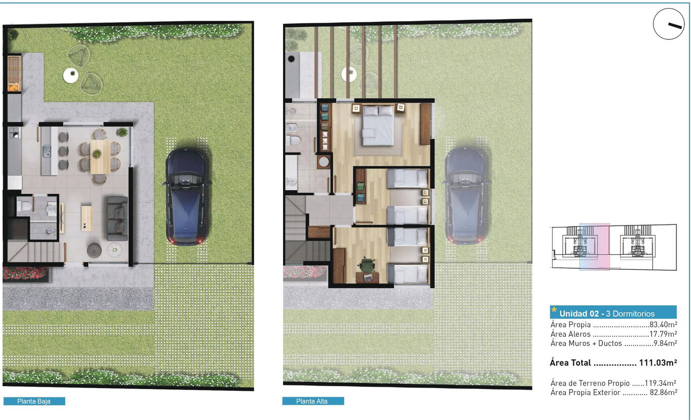 Dúplex de 3 dormitorios.