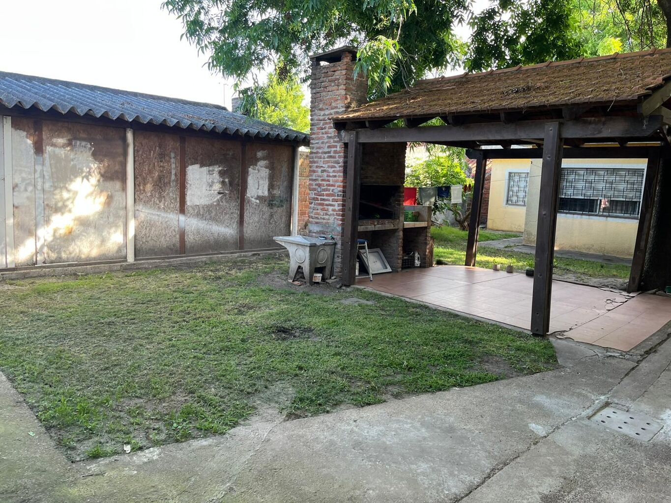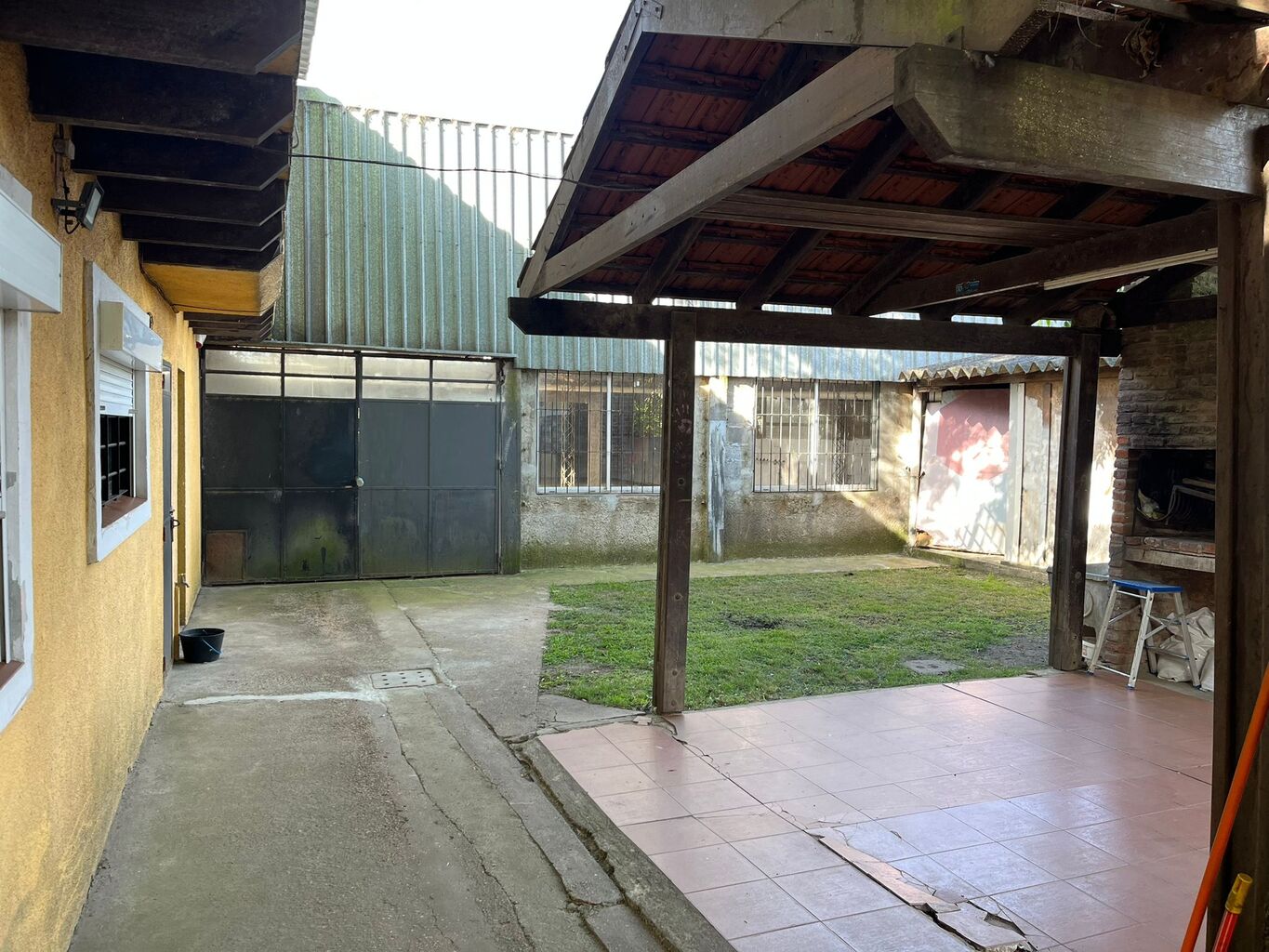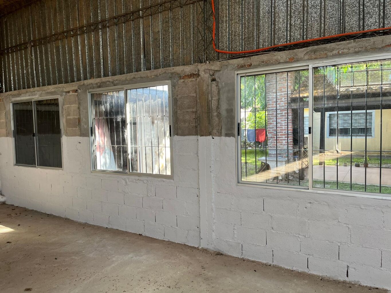 El galpón esta hecho de bloques , techo de chapa y todo en buen estado.