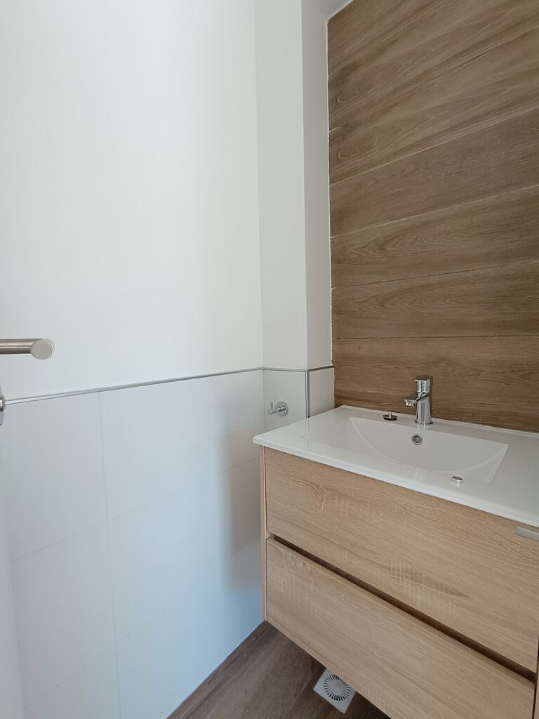 Baño completo compartimentado.