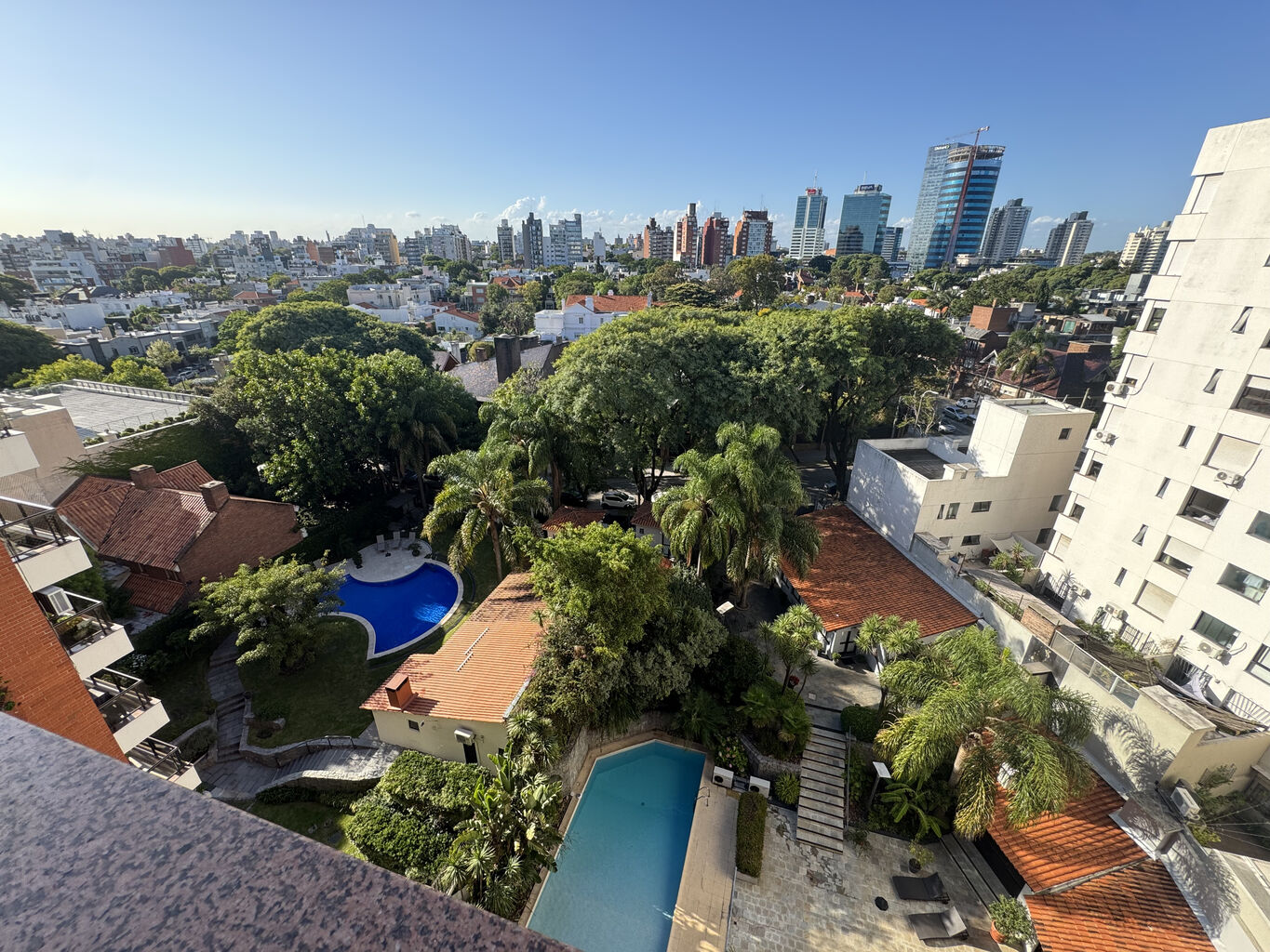 El edificio cuenta con todas las comodidades de un desarrollo de lujo: piscina, salón de eventos, sauna, gimnasio, calefacción y portería 24/7.