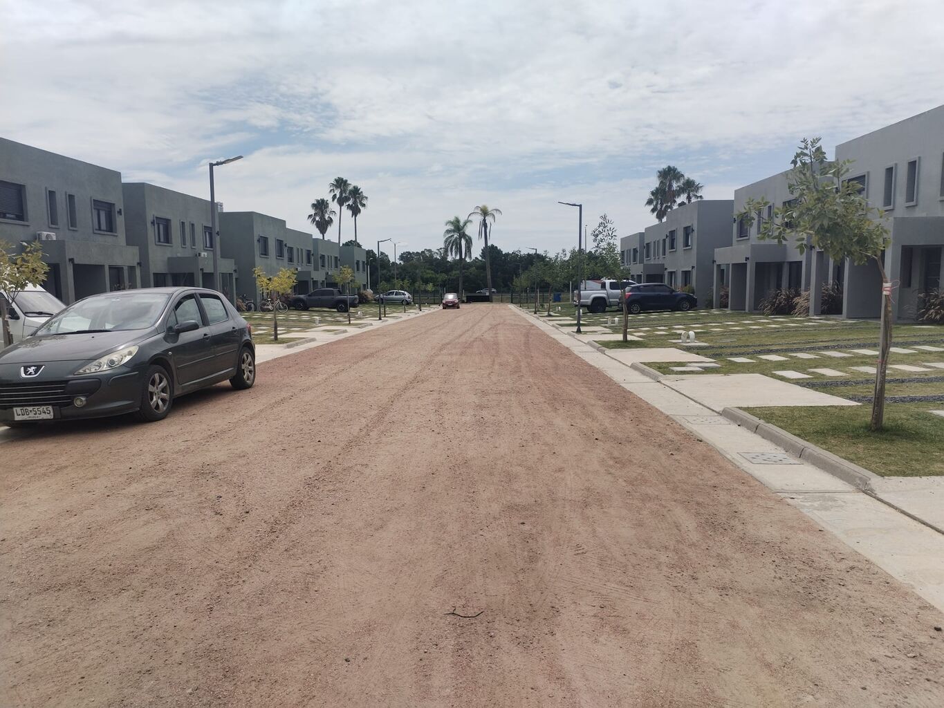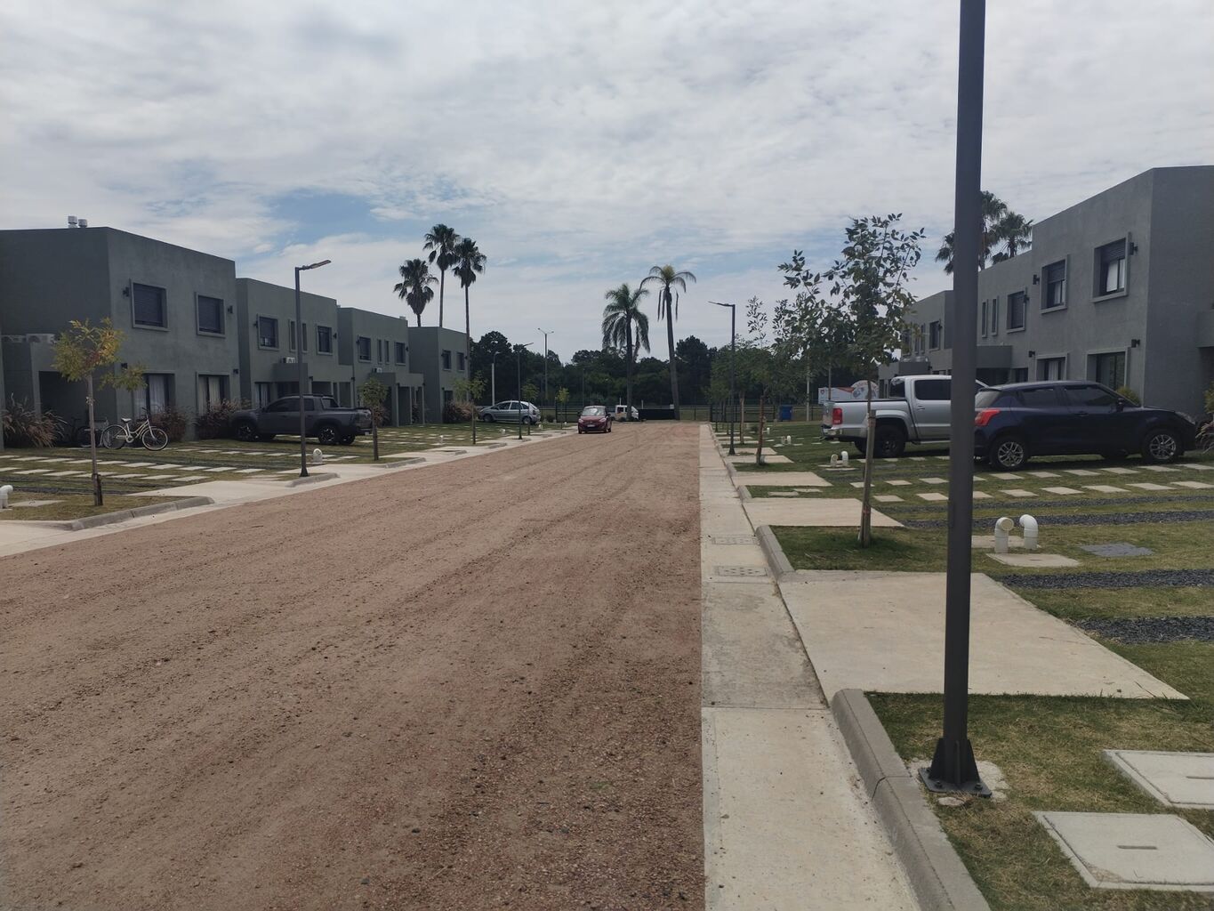 Las casas están rodeadas de espacios verdes y cada una tiene espacio para estacionamiento propio dentro del terreno.