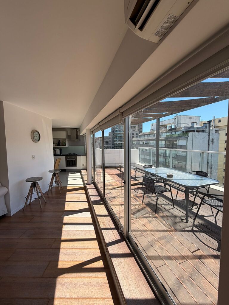 Alquiler de apartamento penthouse de 3 dormitorios y 2 baños, principal en suite con vestidor.Se ofrece completamente amueblado, con mobiliario de diseño y excelente funcionalidad en todos sus ambientes. Cuenta con amplio living comedor con salida directa a una agradable terraza con parrillero y vista despejada. Cocina semi integrada, cómoda y bien equipada.