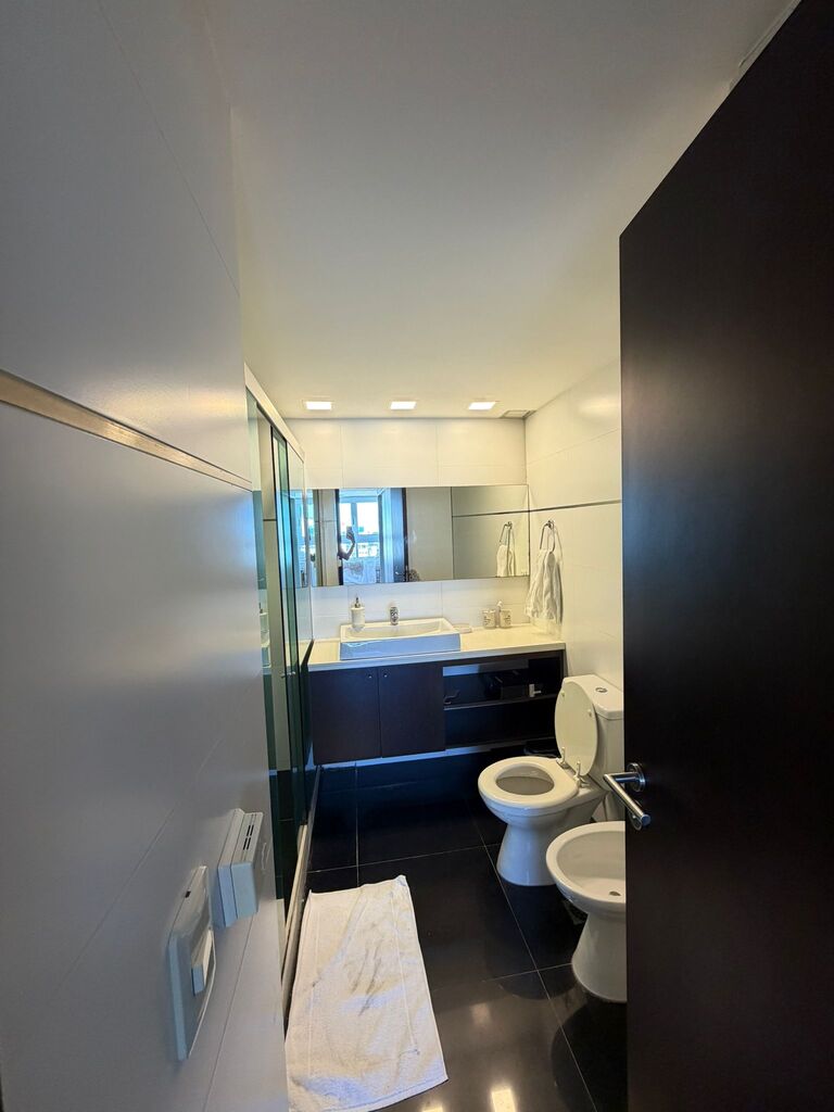La unidad cuenta con losa radiante y aire acondicionado en todos los ambientes, garantizando confort durante todo el año. Incluye doble garaje.