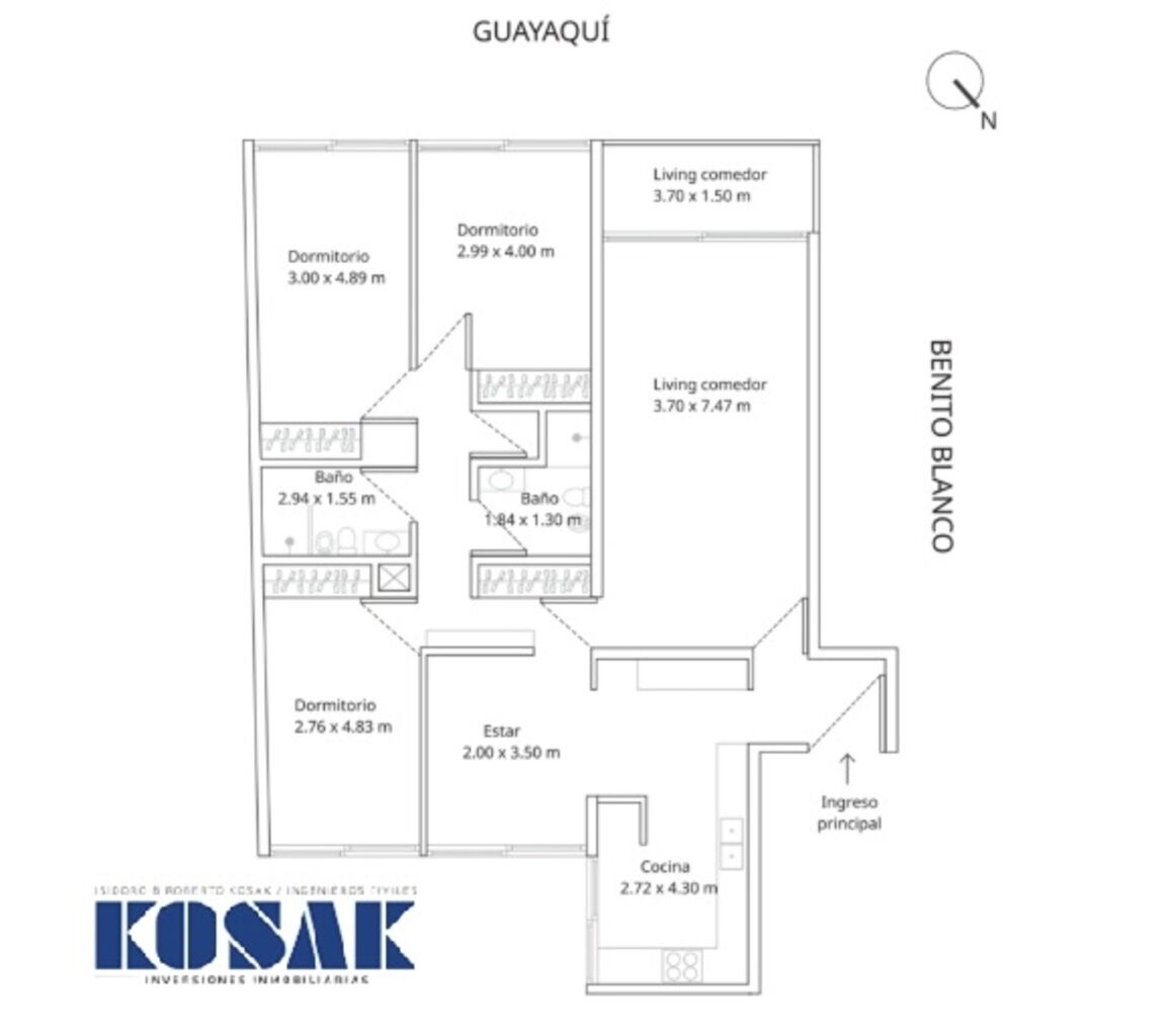 3 dormitorios con amplios placares empotrados, dos de ellos con vista a la rambla.