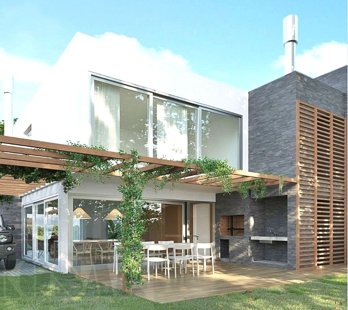 Cochera con pérgola de madera