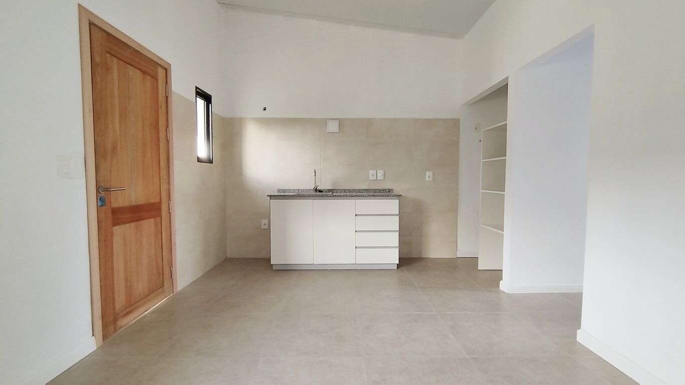 La casa cuenta con estar con cocina integrada, dormitorio, baño y patio con parrillero.