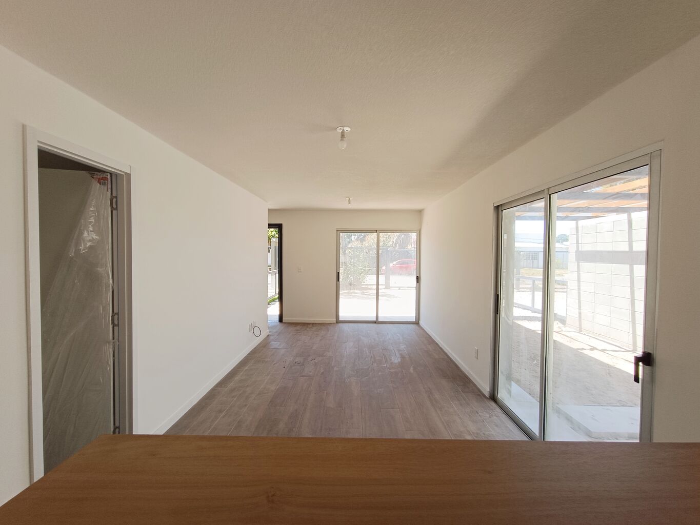 Planta Baja: living comedor con cocina integrada con mueble en melamínico MDF bajo y sobre mesada. Baño social. Ingreso vehicular y peatonal independiente, cochera para dos o mas vehículos, parrillero, pérgola