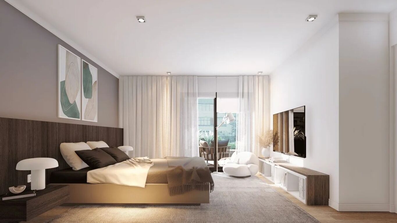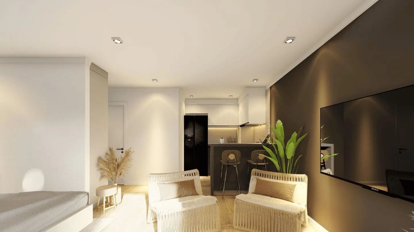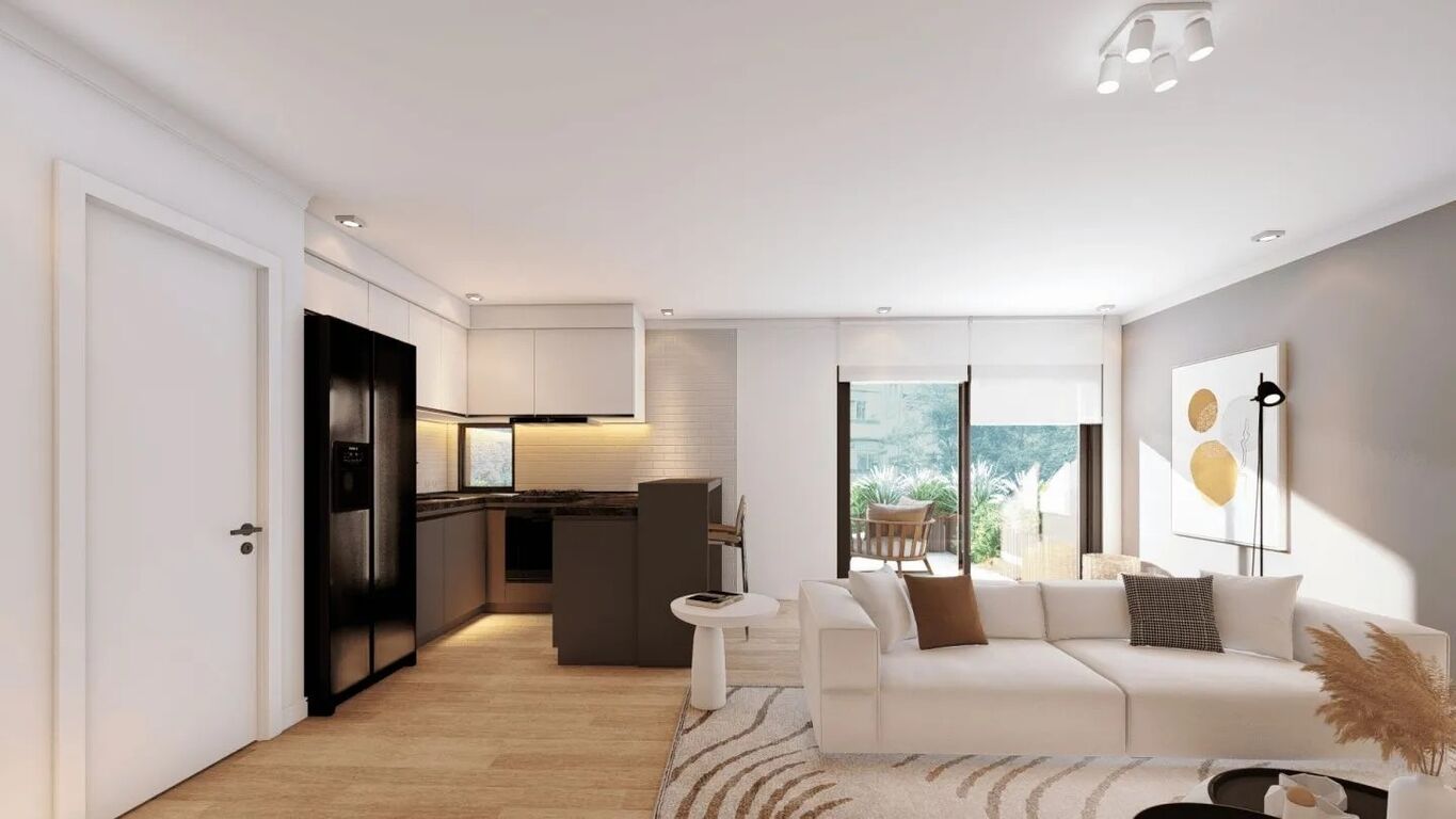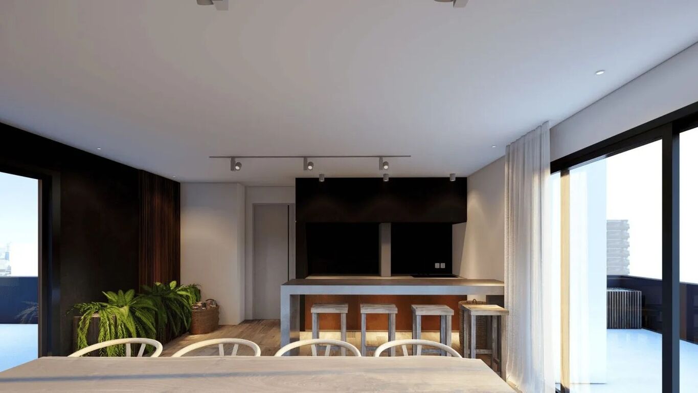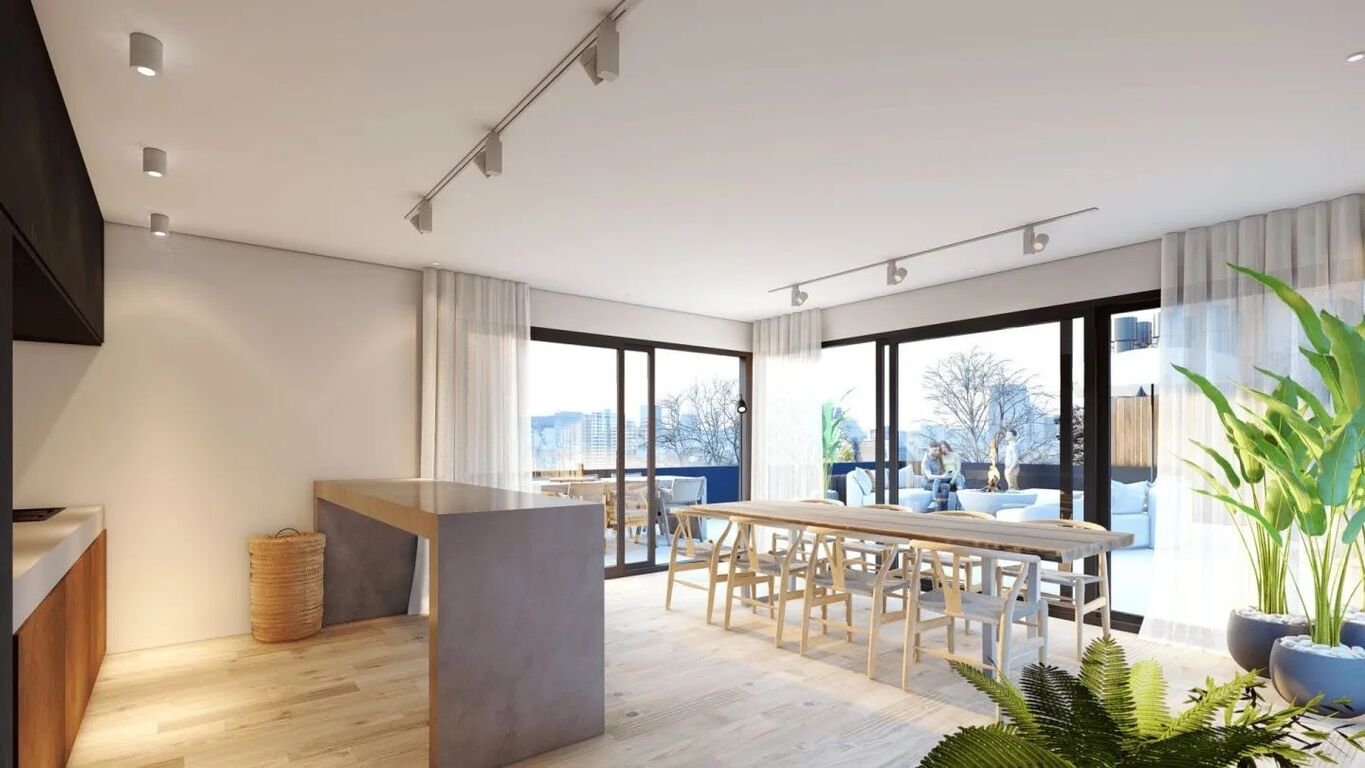 Unidad 103 - 27 m2 totales. La unidad cuenta con estar, cocina integrada con barra con mueble bajo y sobremesada, espacio dormitorio y baño completo, mueble con conexiones para lavarropas y calefón.