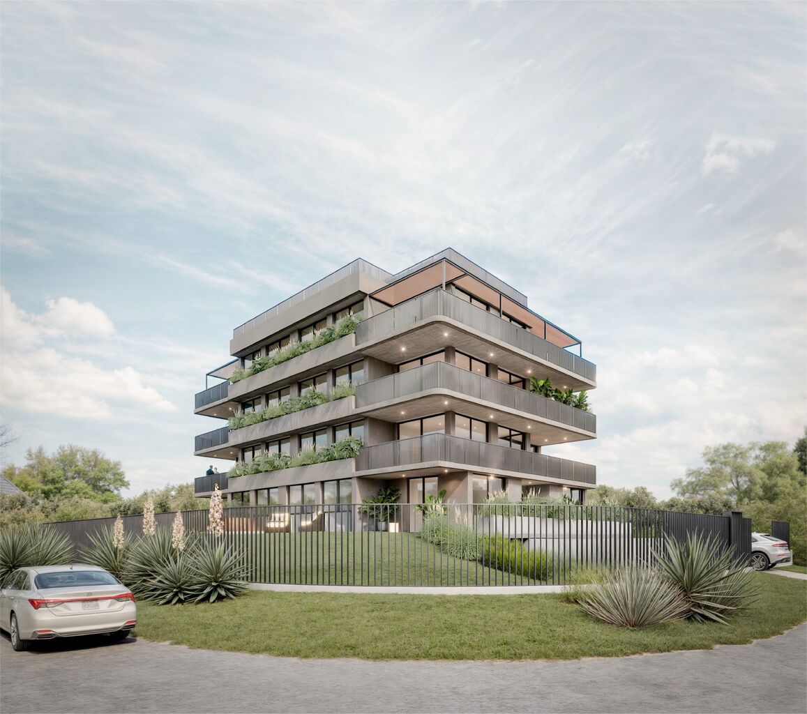 6 unidades distribuidas en los niveles 1, 2 y 3, cada una con terrazas privadas y diseño moderno.