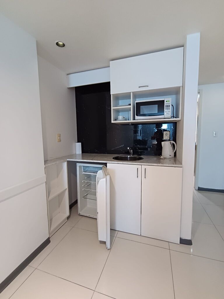 Kitchenette con Frigobar, Anafe, Platos, Cubiertos y Microondas.