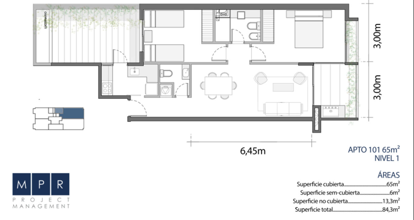 La unidad forma parte de un proyecto que se destaca por su diseño funcional, óptima distribución y terminaciones de calidad. Contará con aberturas de aluminio anodizado negro con doble vidriado hermético (DVH), pisos vinílicos símil madera y mobiliario de cocina y placares laminados.
