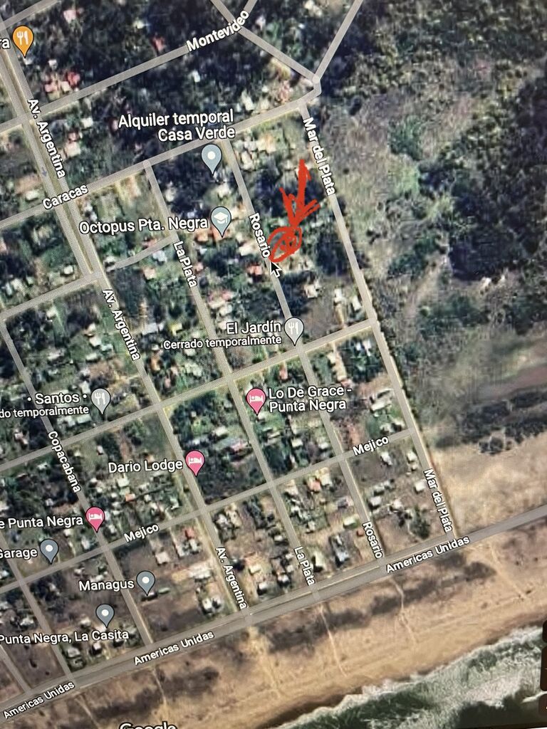 Venta terreno en Punta Negra- 600 m2 a 200 metros del mar.Solar nro 12 , Manzana 96. 15 metros de frente al Este calle Rosario entre Caracas y Norteamérica, 40 mts Norte , 15 metros Oeste y 40 metros Sur.