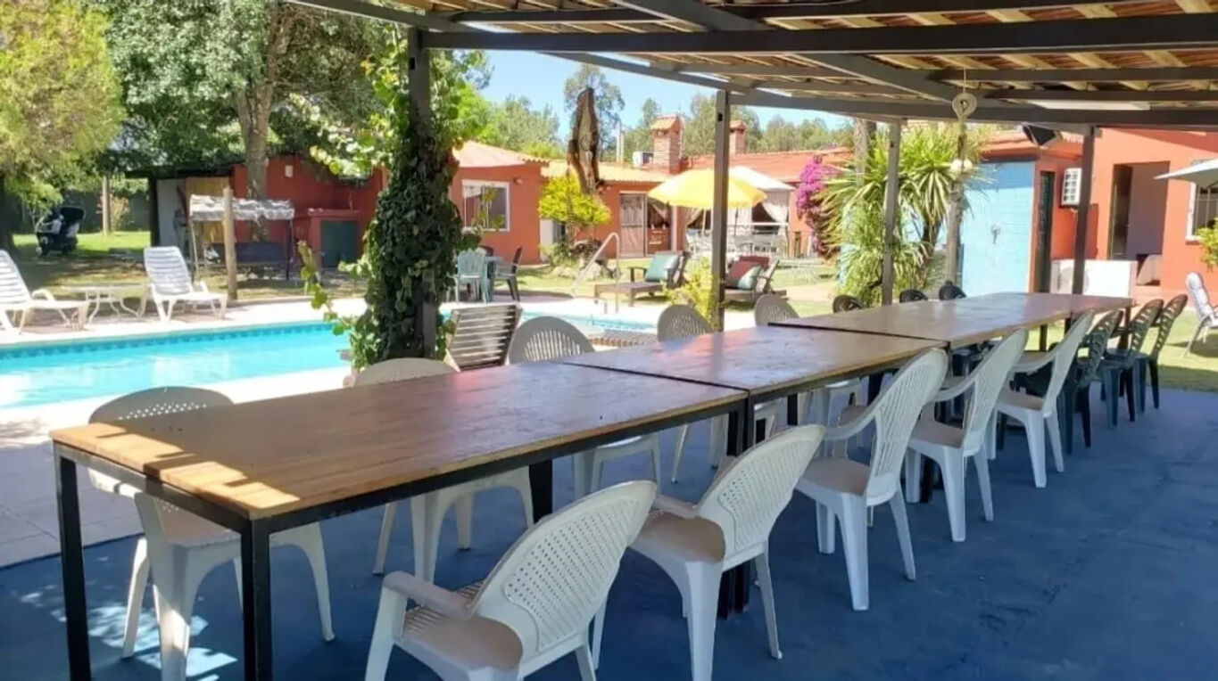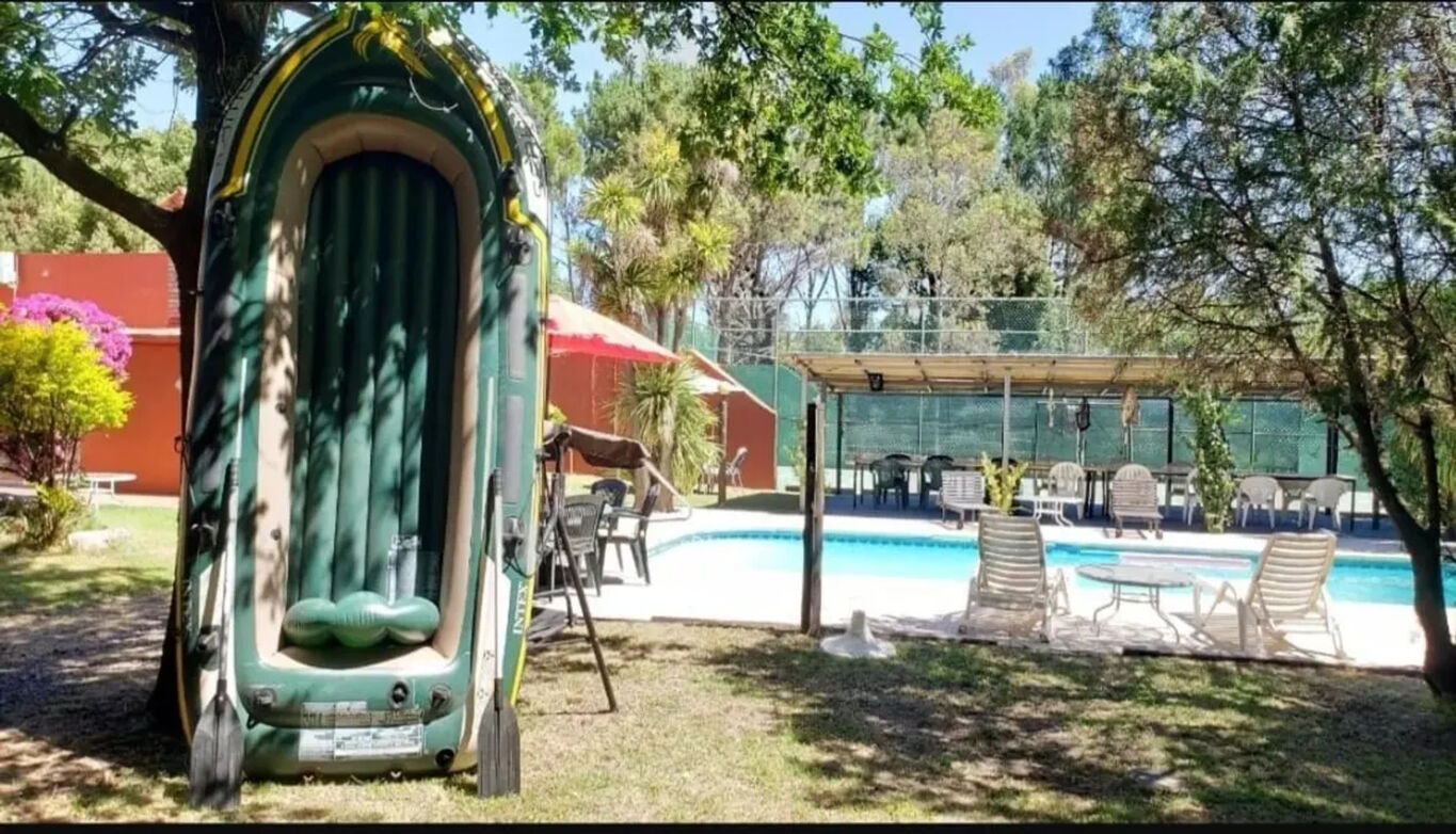 Barbacoa enorme , juegos infantiles, cancha de paddle, volley ,terreno que da al arroyo Solís, con acceso para usar botes .