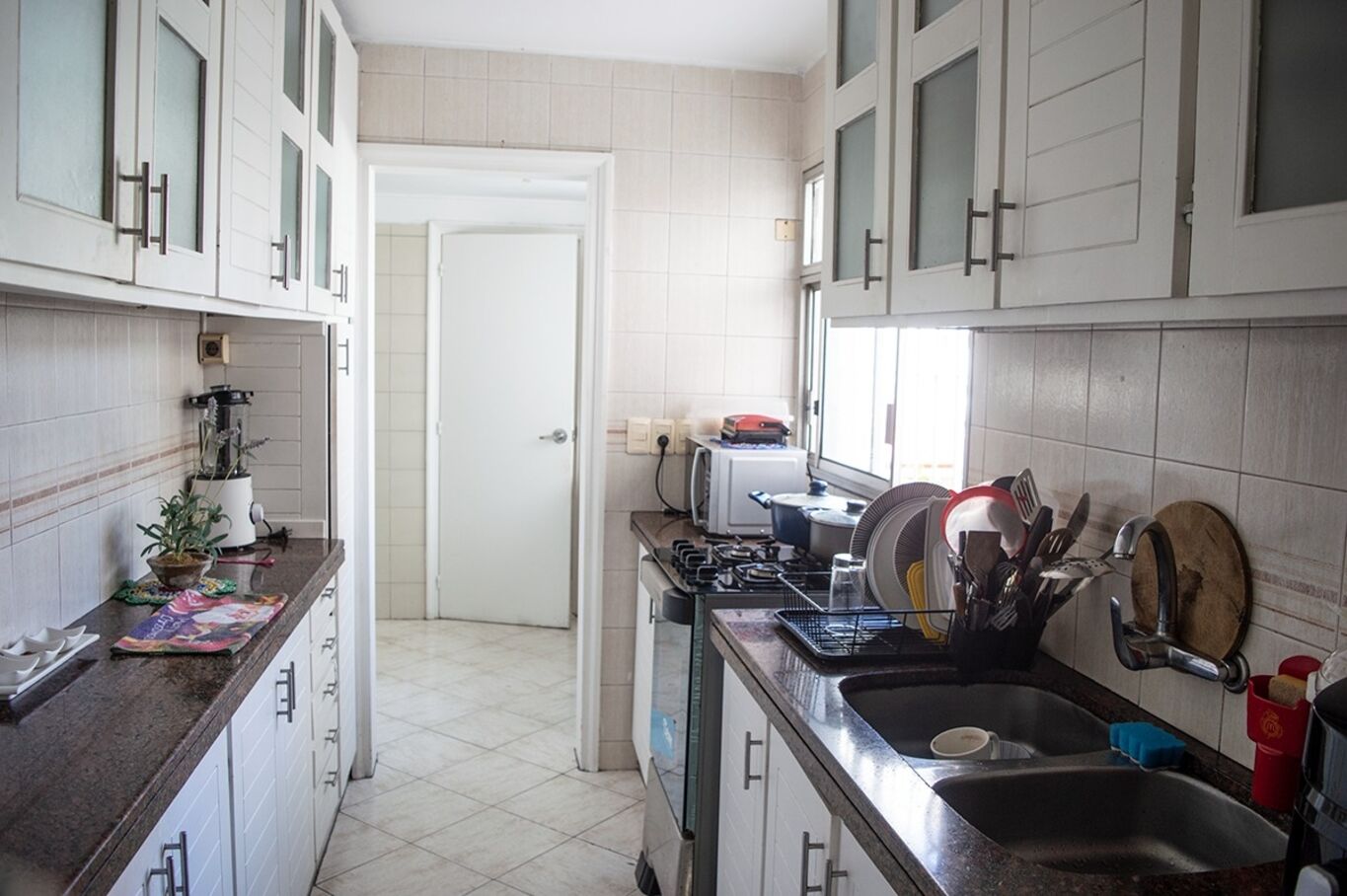 Doble entrada. Entrada principal hacia hall recibidor, que conecta con el living comedor, la cocina y el sector de dormitorios. Entrada de servicio con acceso directo a cocina con office, estar, terraza lavadero cerrada, dormitorio y baño de servicio.